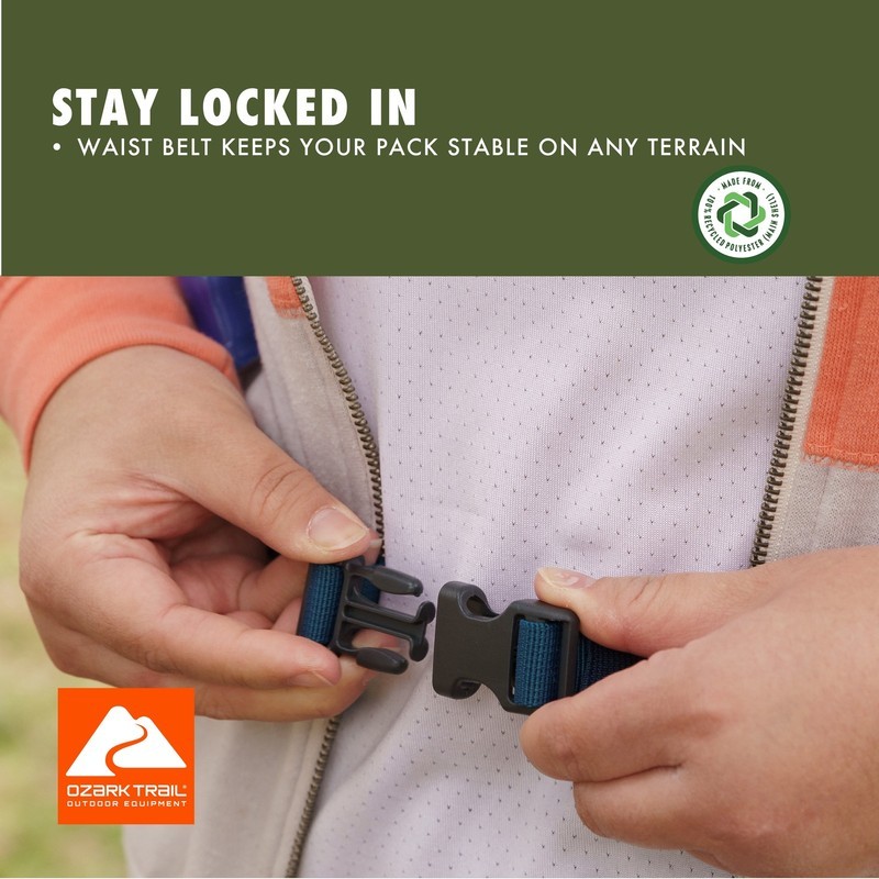 Before heading out on your next hike or other outdoor adventure, make sure to grab the Ozark Trail 14 Liter Hydration Hiking Backpack. This 14L pack is designed for maximum versatility so you can focus on the great outdoors. It features two main compartments for maximum storage and organization, as well as a shove pocket with a clean, gusseted design for carrying extra items. Also included are side profile daisy chains for carrying items externally. This adult-sized pack was also designed for maximum comfort. It is made with a low-profile adjustable sternum strap to help you get the perfect fit and air-mesh padded shoulder straps and back panel for comfortable carrying without a frame. It is also hydration compatible and comes with an included 2L reservoir so you can stay hydrated on the trails. Whether you are setting off on a quick day hike, exploring the city, shopping, or anything else, the Ozark Trail 14 Liter Hydration Hiking Backpack will help you stay organized and hydrated while you are on the go.