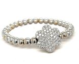 14k A G Gold Beaded Flower Stretch Bracelet w/ 1.8 ct Pave Diamond Flower
