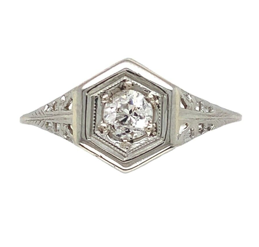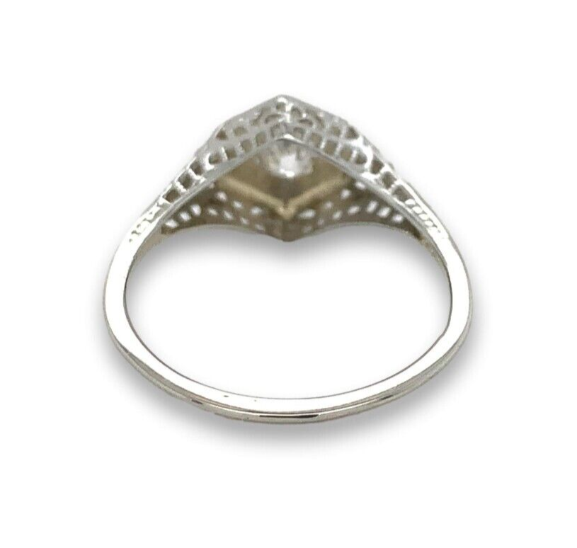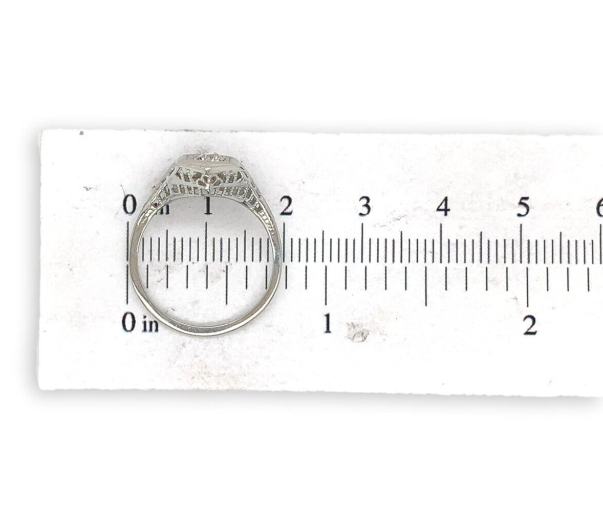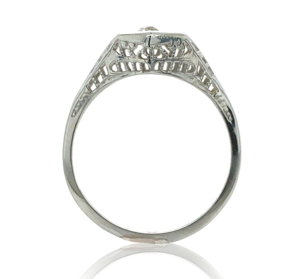 14k White Gold Art Deco Filigree Ring w/ .22ct Genuine Natural Diamond (#J6818)