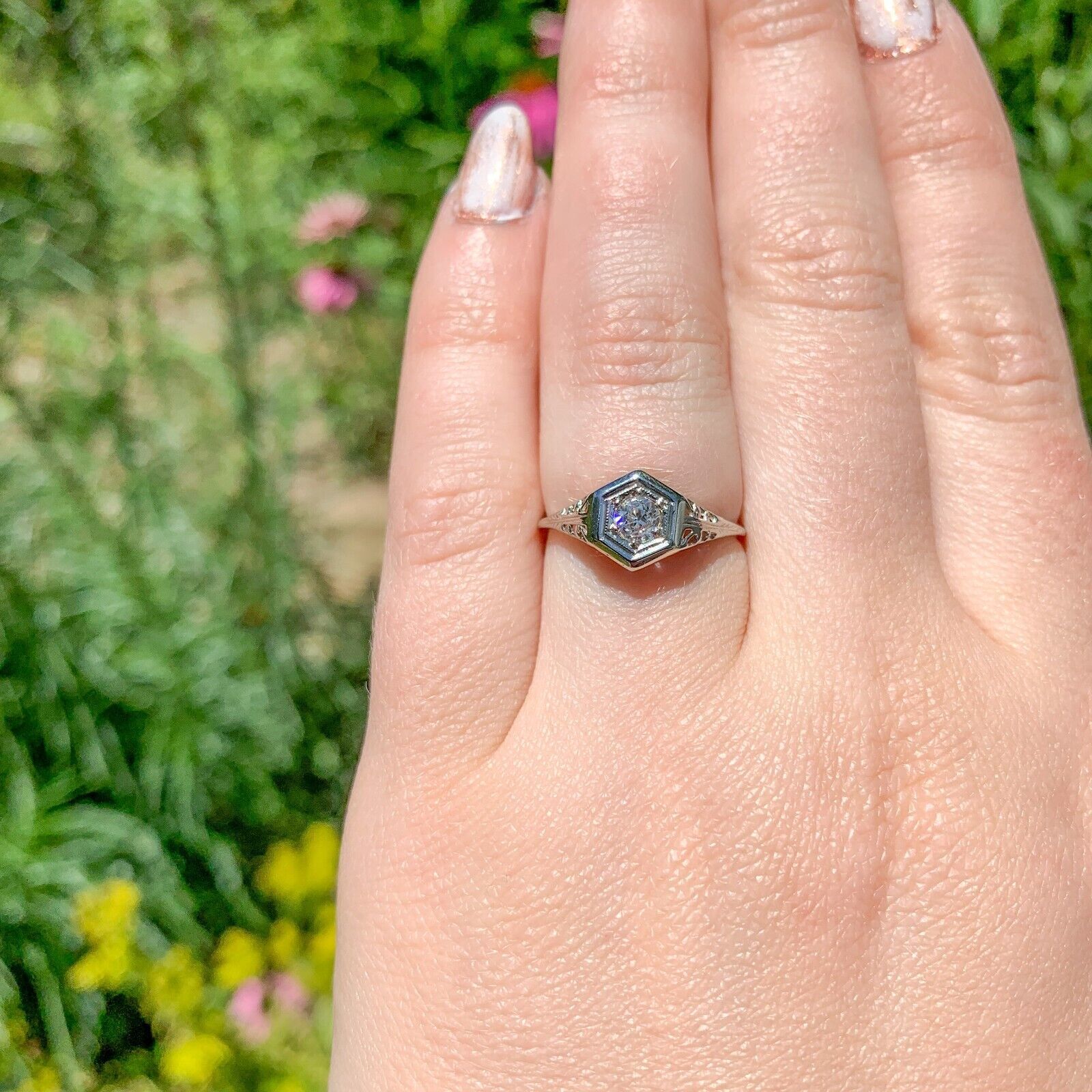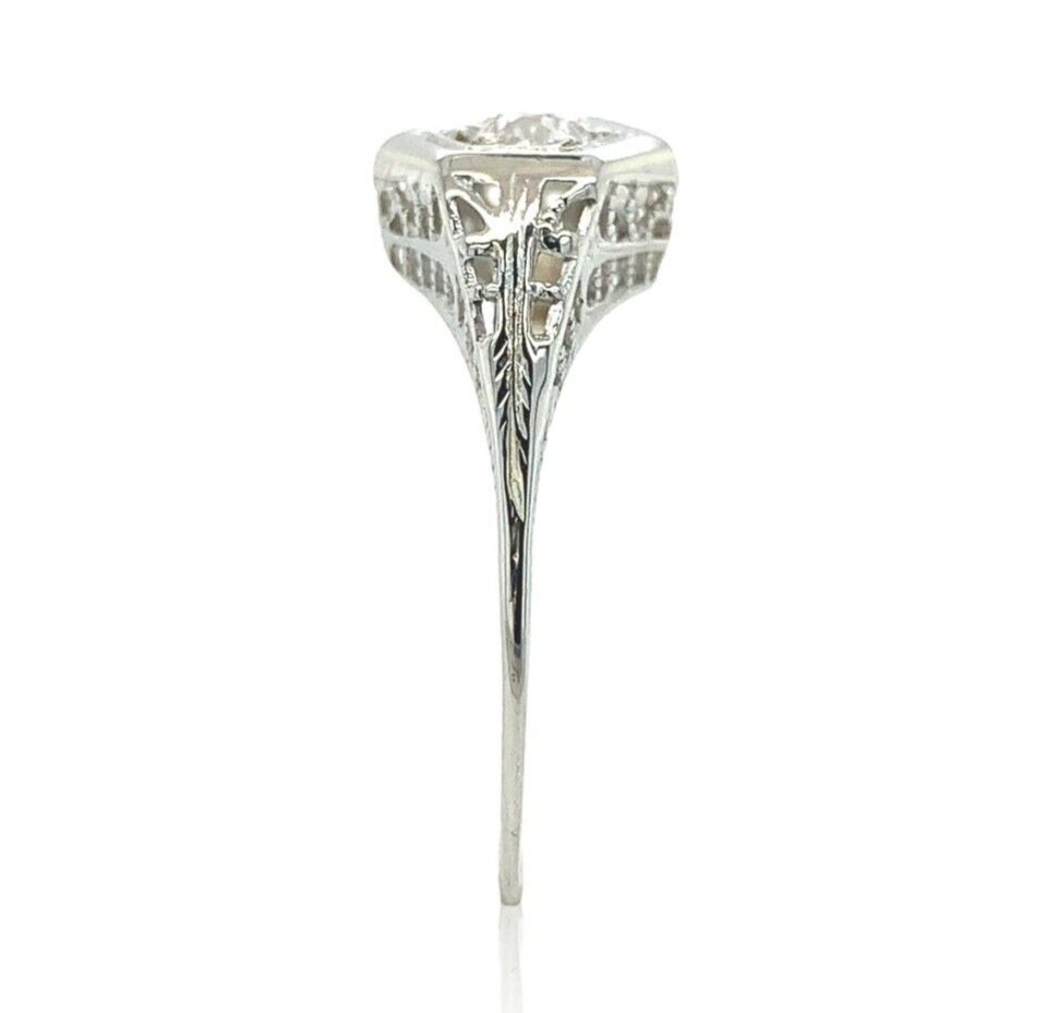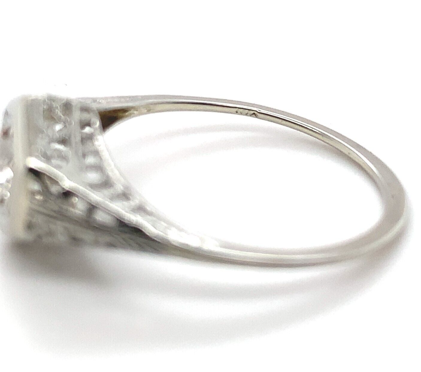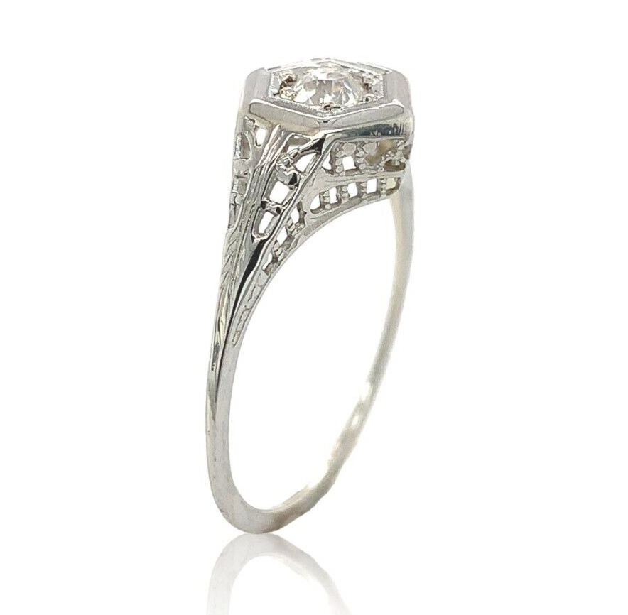 14k White Gold Art Deco Filigree Ring w/ .22ct Genuine Natural Diamond (#J6818)