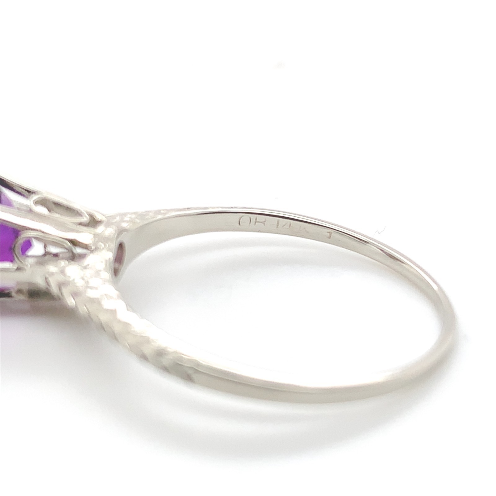 14k White Gold Victorian 1.05 Carat Genuine Natural Amethyst Ring 7.5 (#J7445)