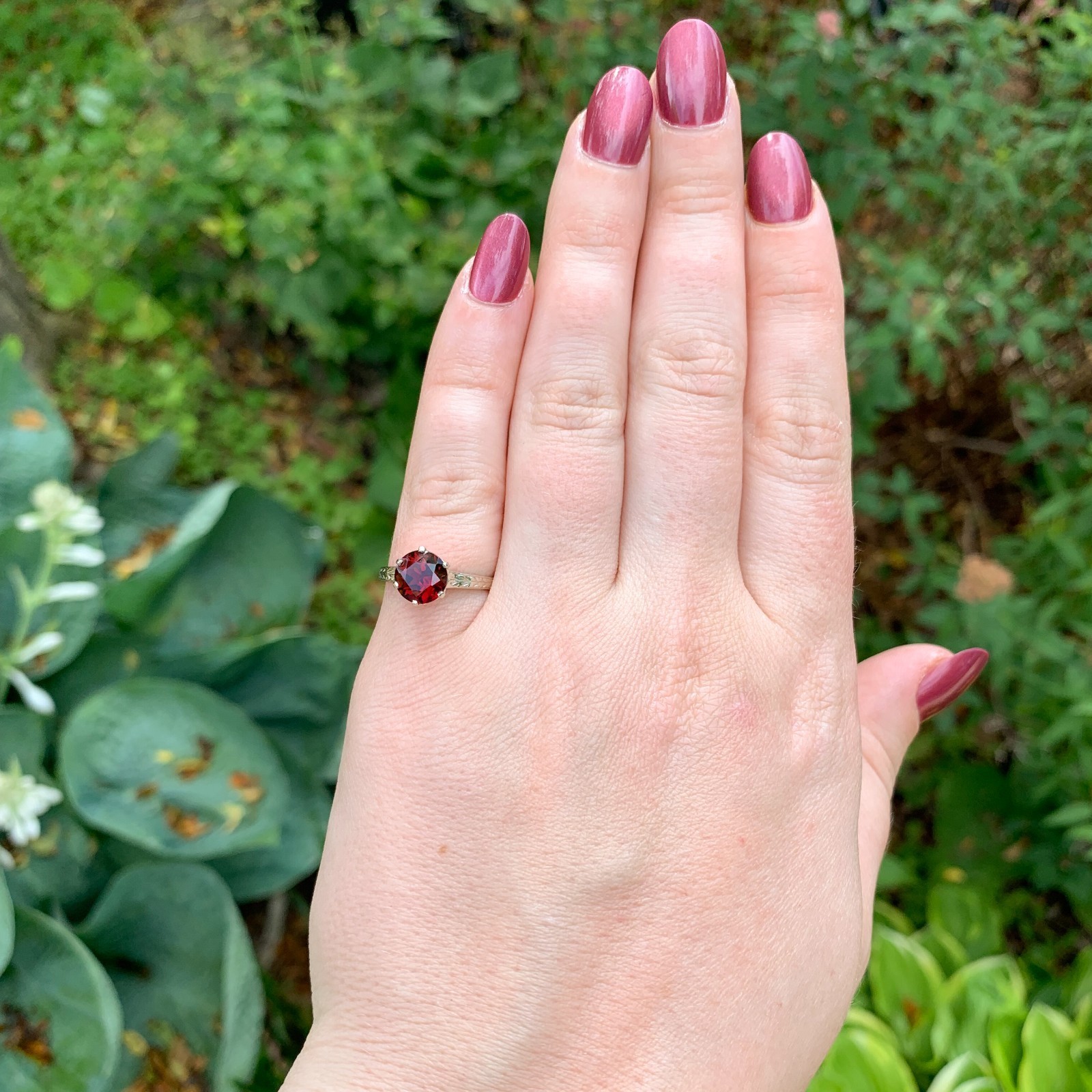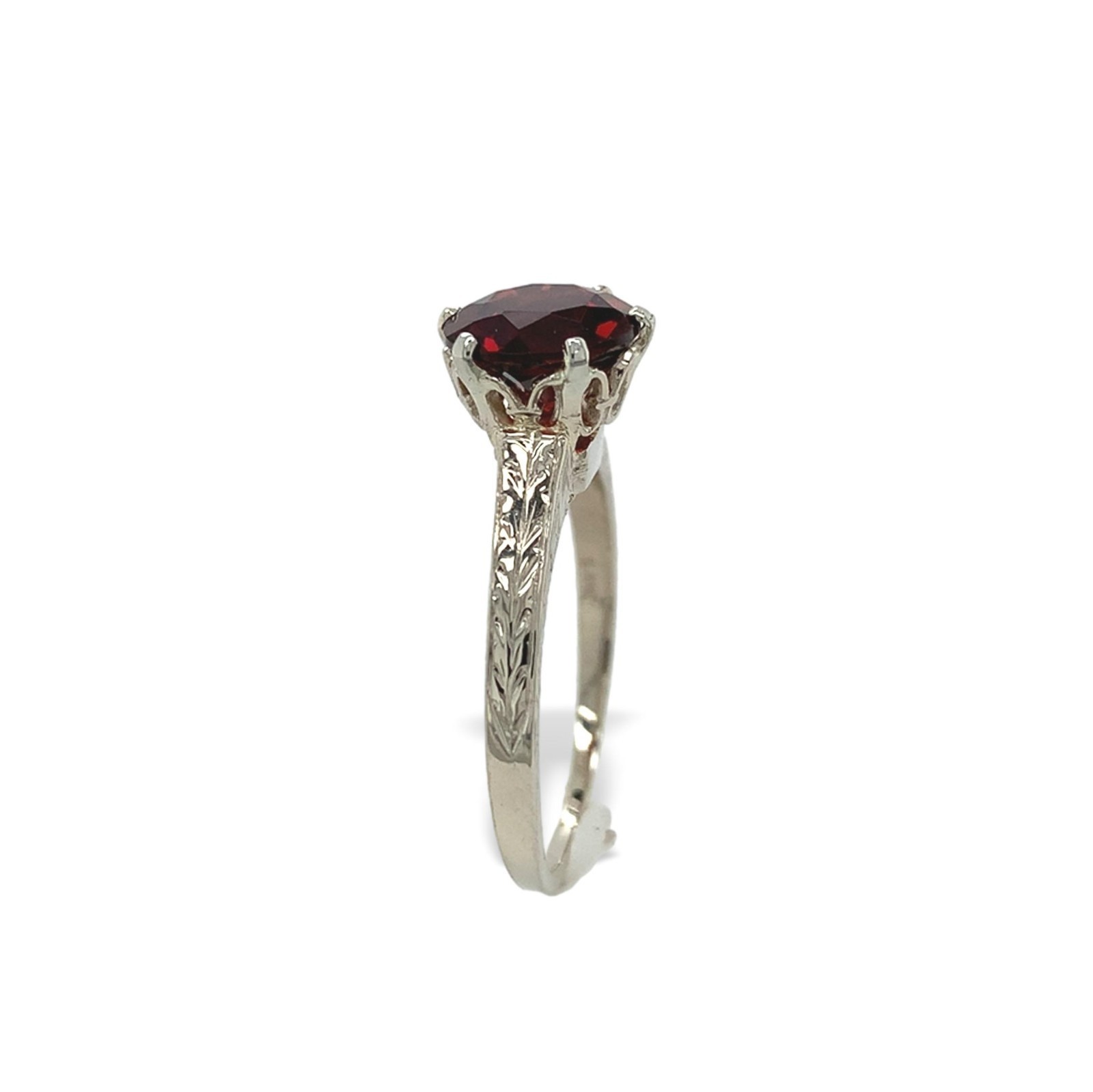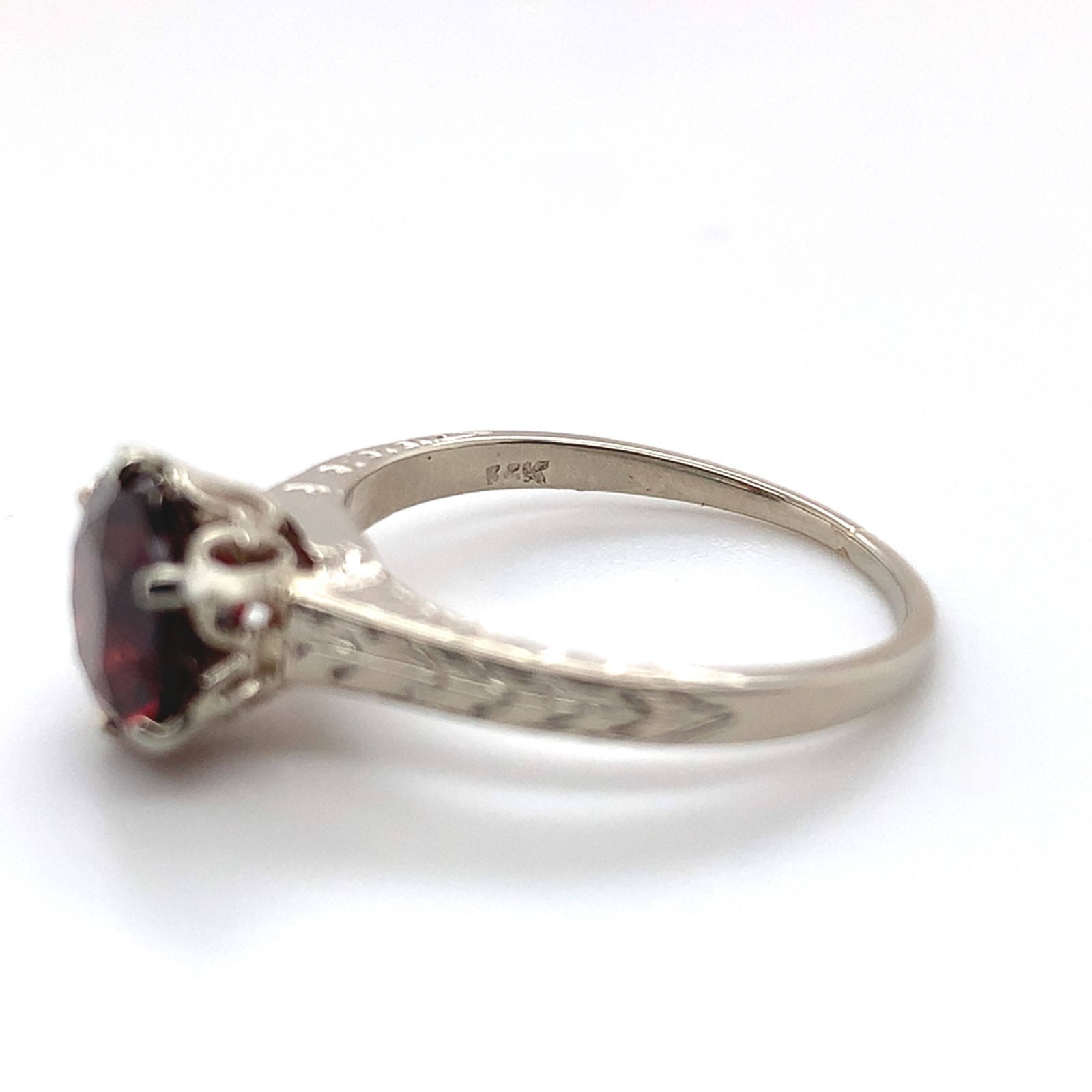- 14k White Gold Victorian 1.90 Carat Genuine Garnet Ring Size 5.5 (#J7476)