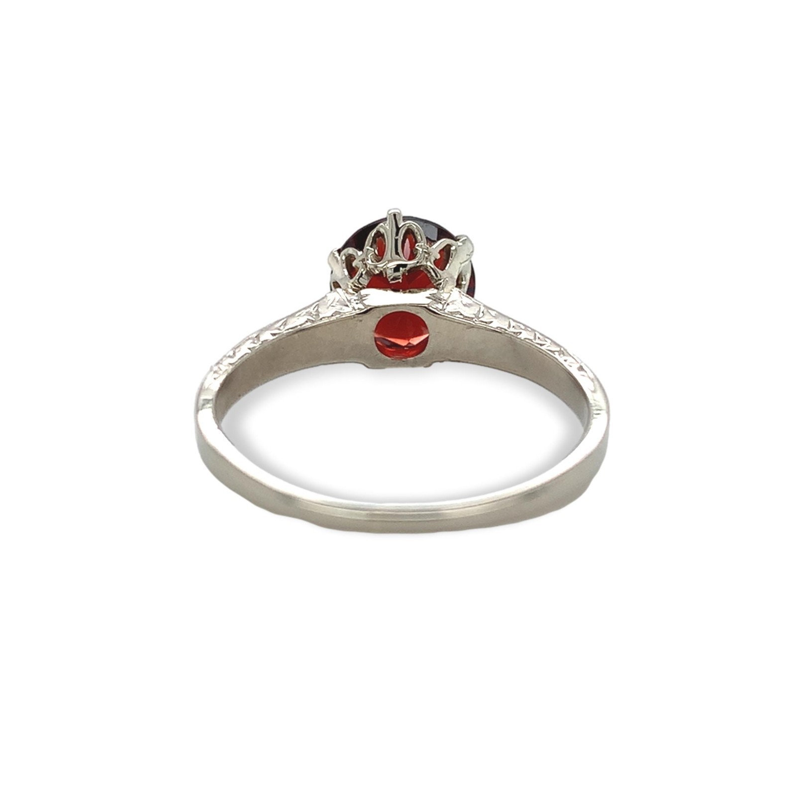 14k White Gold Victorian 1.90 Carat Genuine Garnet Ring Size 5.5 (#J7476)