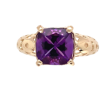 14k Yellow Gold 1.90 Carat Cushion Cut Genuine Natural Amethyst Ring (#J7414)