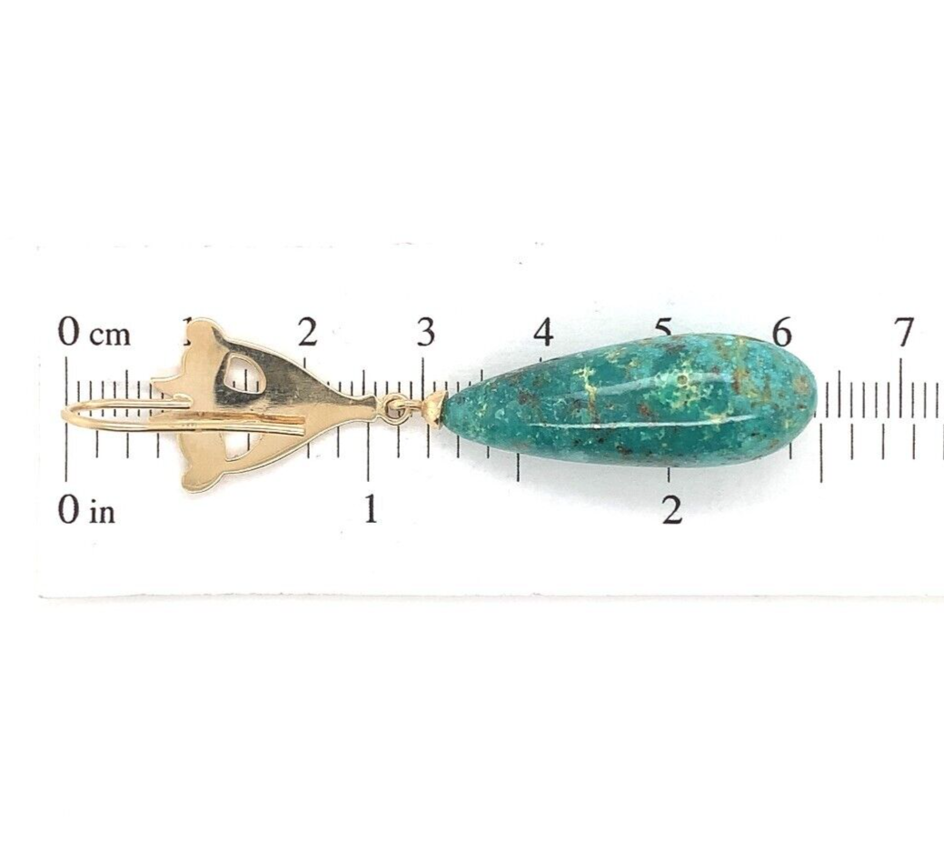 - 14k Yellow Gold 47.50ct Genuine Natural Fox Turquoise Dangle Earrings (#J6121)