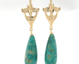 14k Yellow Gold 47.50ct Genuine Natural Fox Turquoise Dangle Earrings (#J6121)