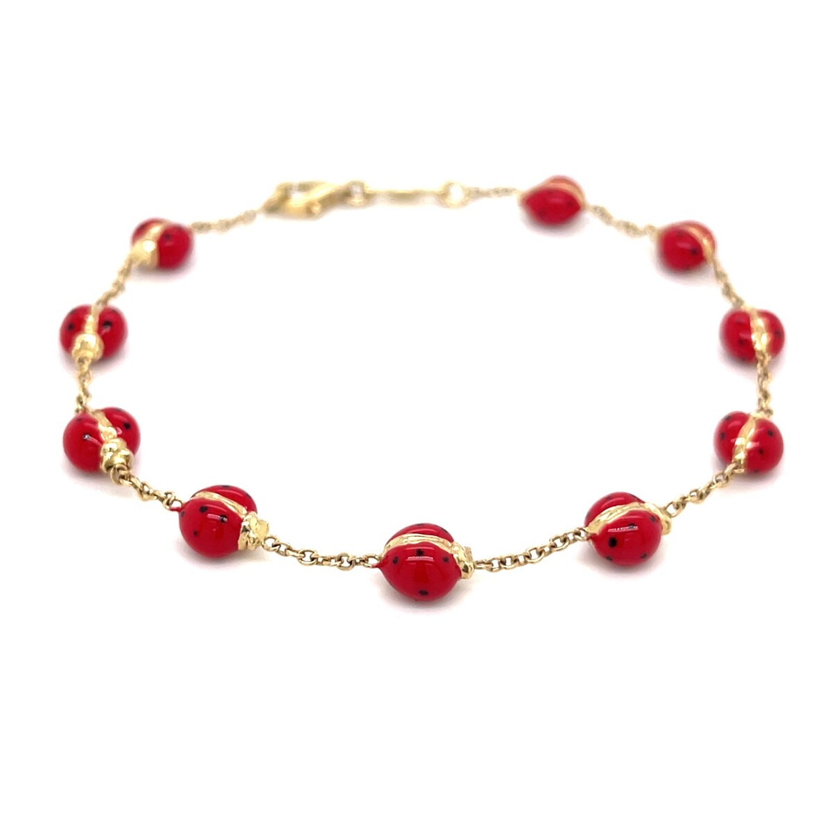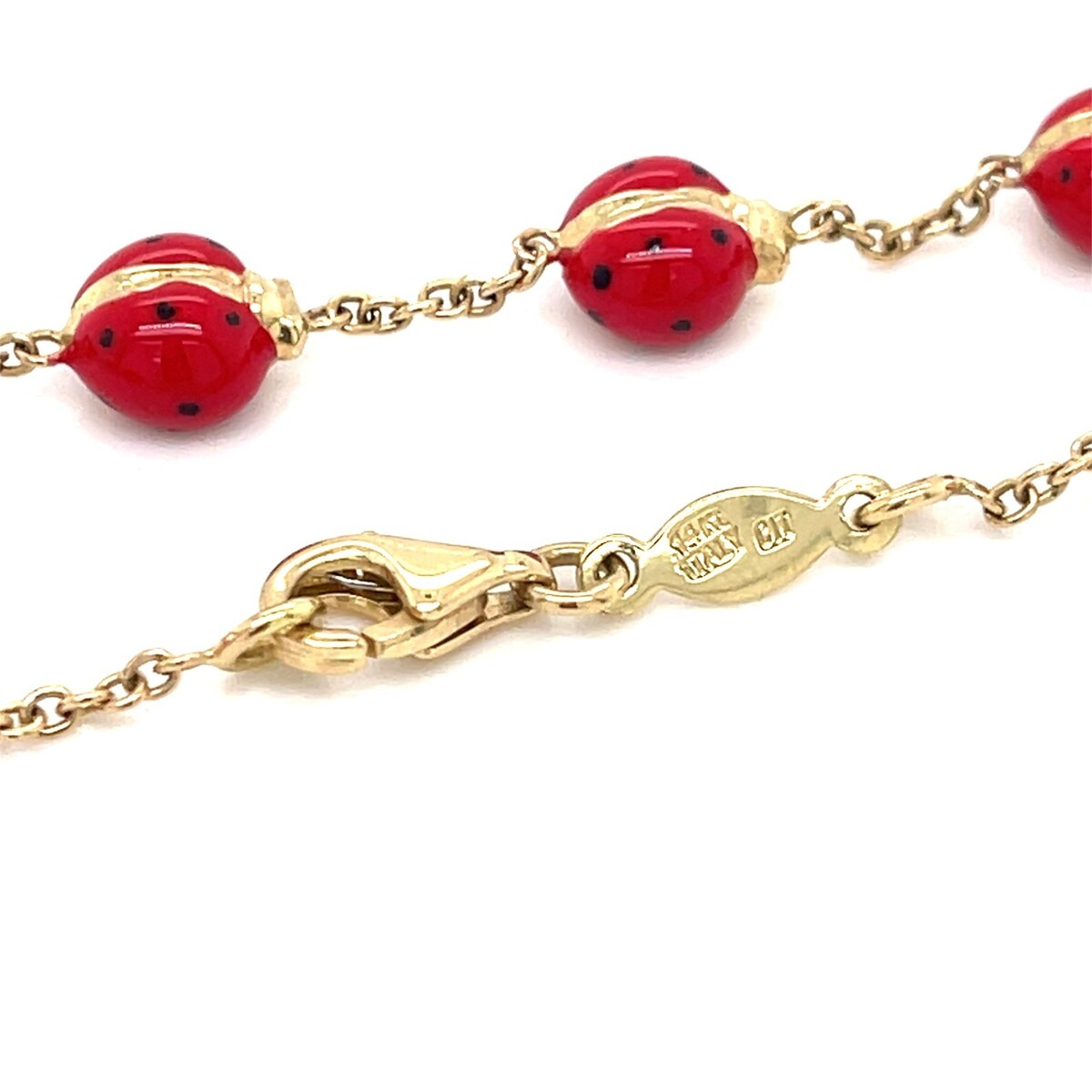 - 14k Yellow Gold Enamel Ladybug Chain Bracelet 8" Gorgeous