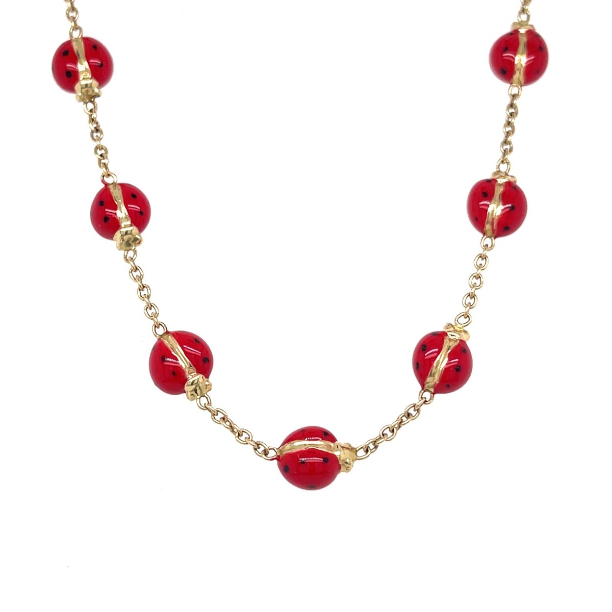 Features Red Enamel Lady Bug Motif w/ Black Spots