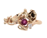 - 14k Yellow Gold Handwrought Rose Ring with Genuine Natural Ruby Diamond (#J7410)