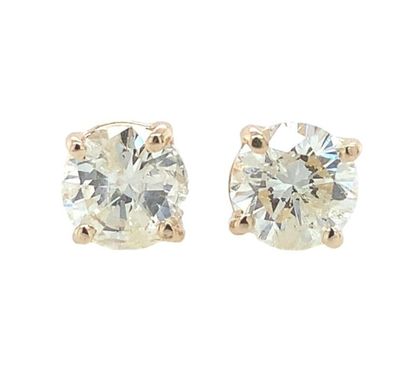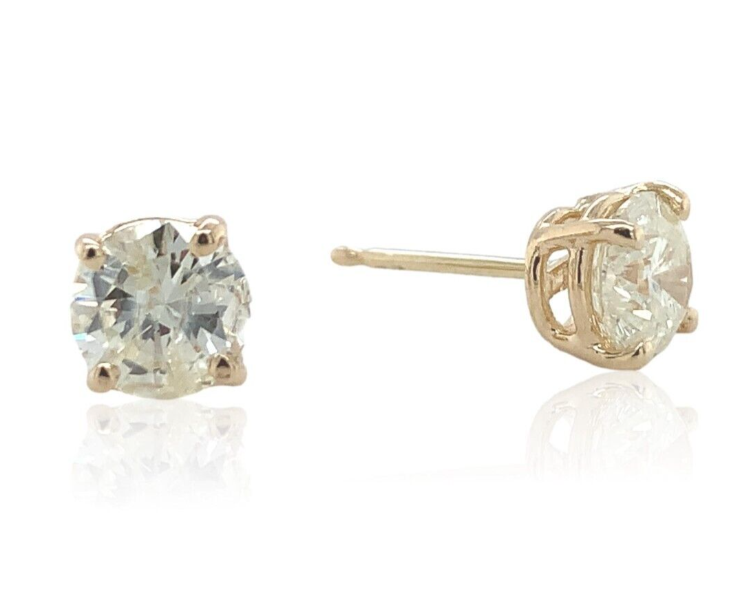 - 14k Yellow Gold Pair of Genuine Diamond Stud Earrings 1.5 Carats Total (#J6733)