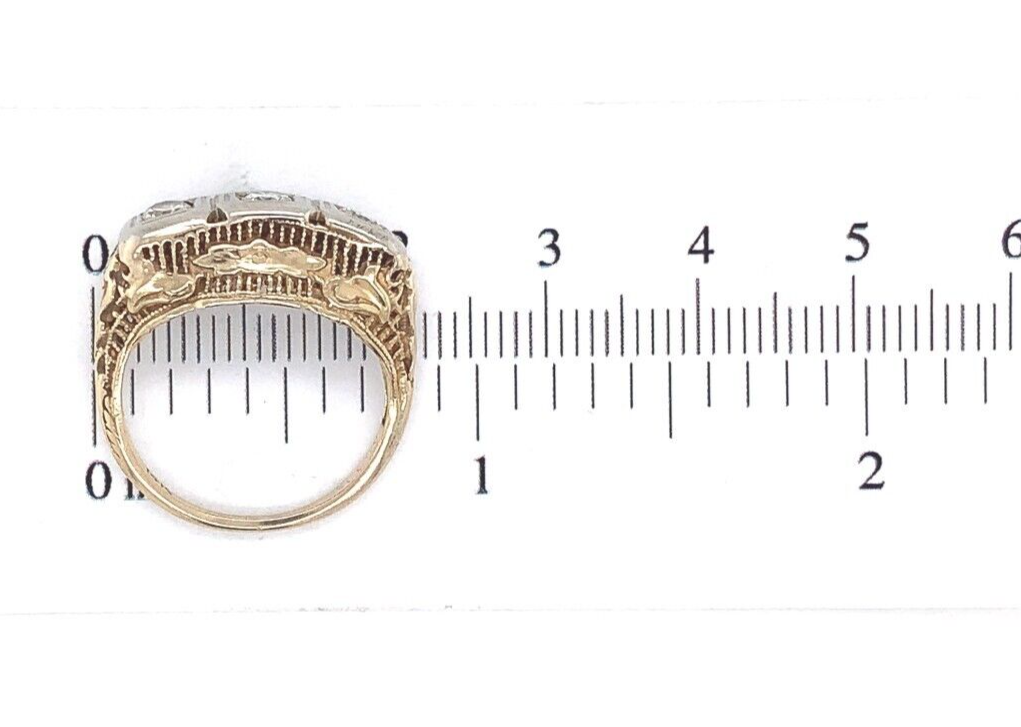 14k Yellow Gold Three Stone Genuine Natural Diamond FIligree Ring (#J6625)