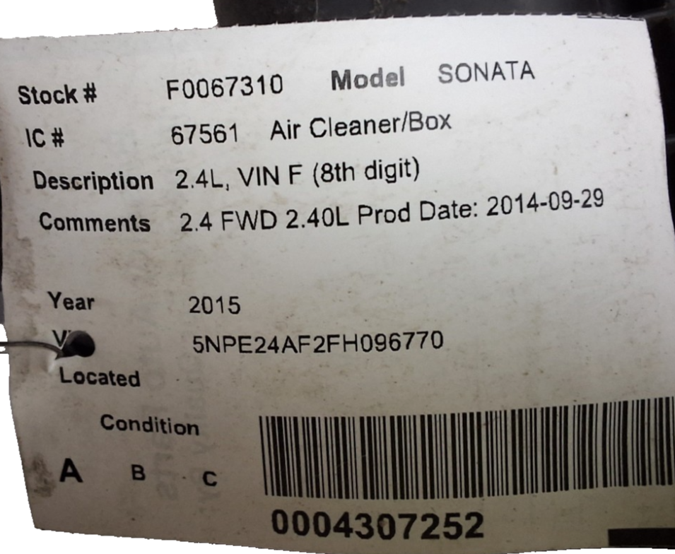 - 15 16 17 Hyundai Sonata 2.4 L engine air cleaner box OEM