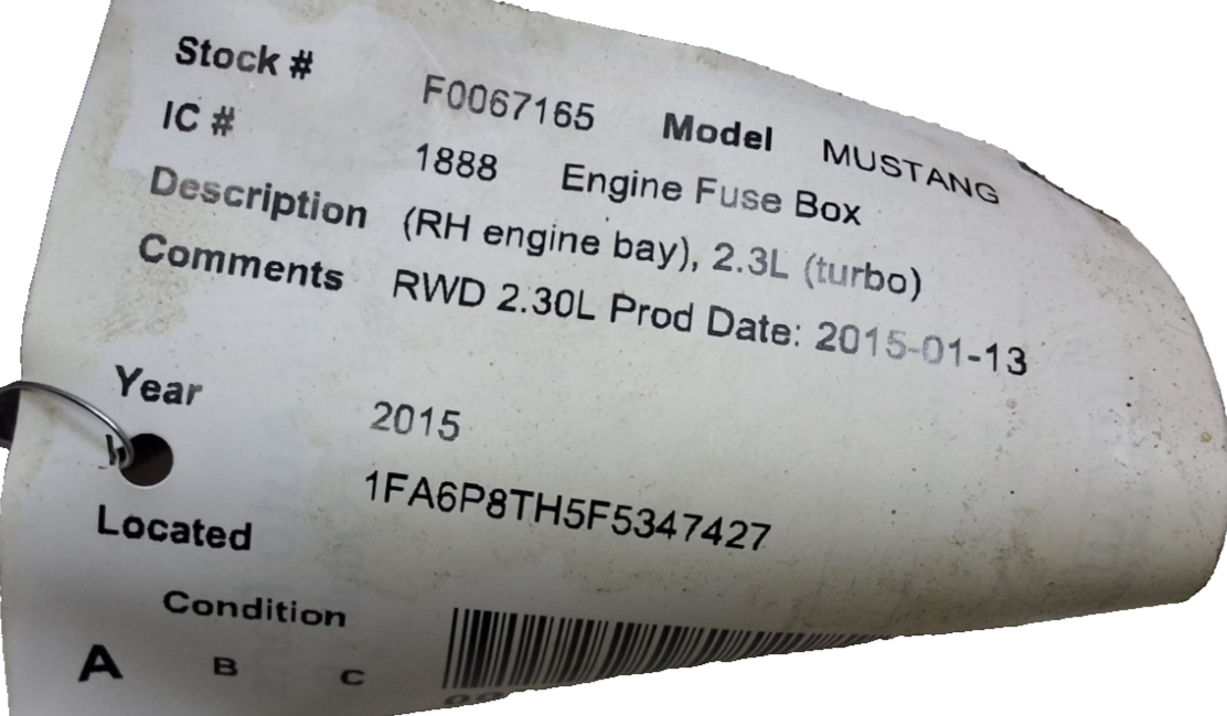 15 Ford mustang 2.3 L turbo engine fuse box assembly OEM