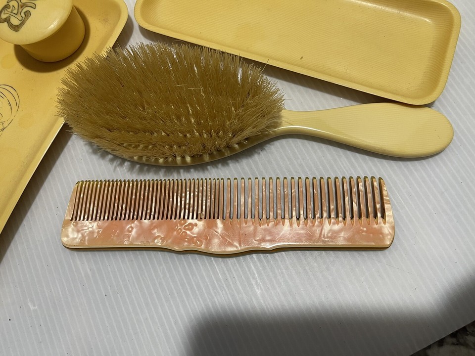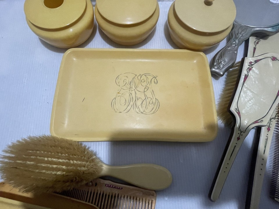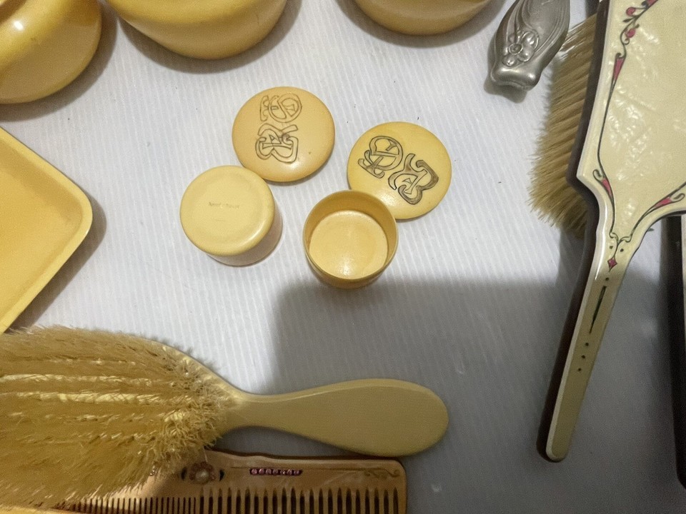 - 15 PC LOT CELLULOID VANITY SET SOME PYRALIN - FRENCH HAIR RECEIVERS BRUSH