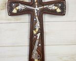 16"H Rustic Western Six Shooter Pistols And Ropes Faux Leather Wall Cross Decor
