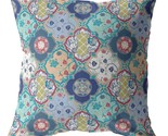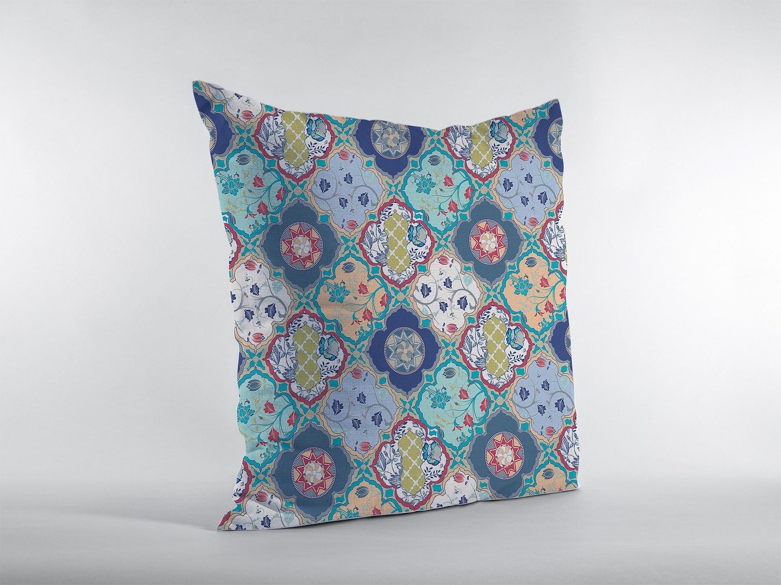 - 16 Inch Blue Peach Trellis Suede Zippered Throw Pillow