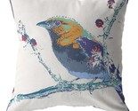 - 16 Inch Blue White Robin Zippered Suede Throw Pillow