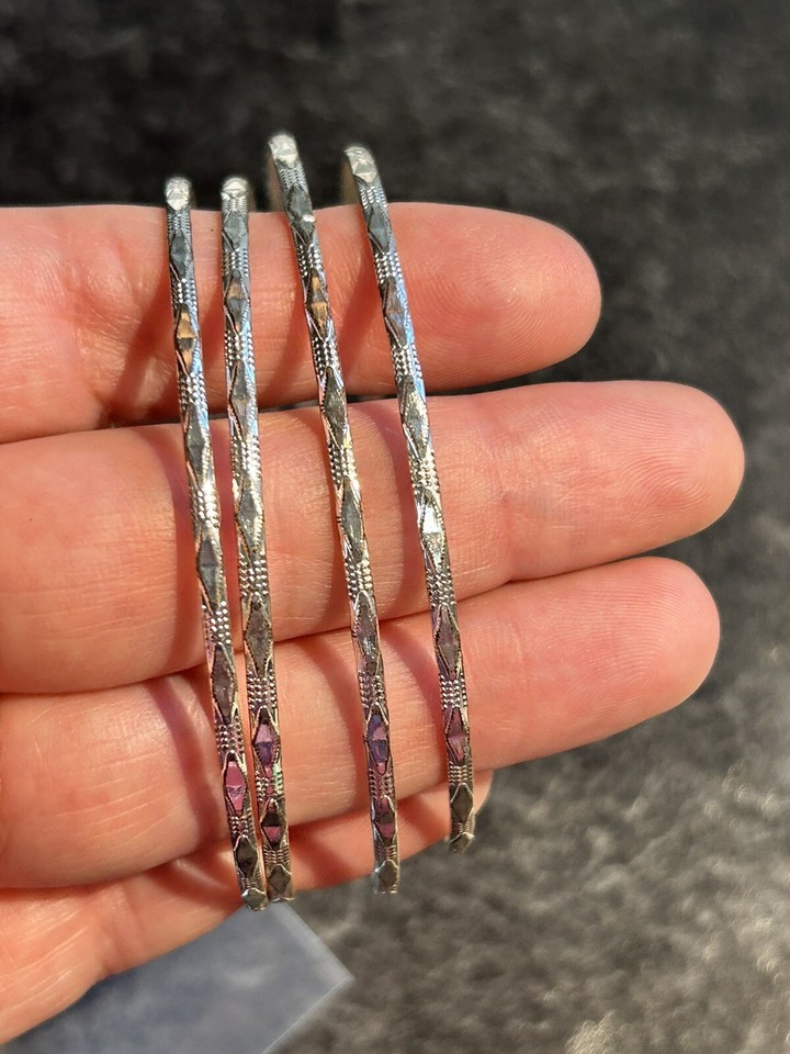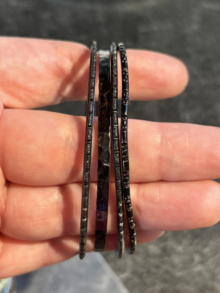16- Thin Textured Fashion Bangle Bracelets Gold, Silver, Black Tone Stackable
