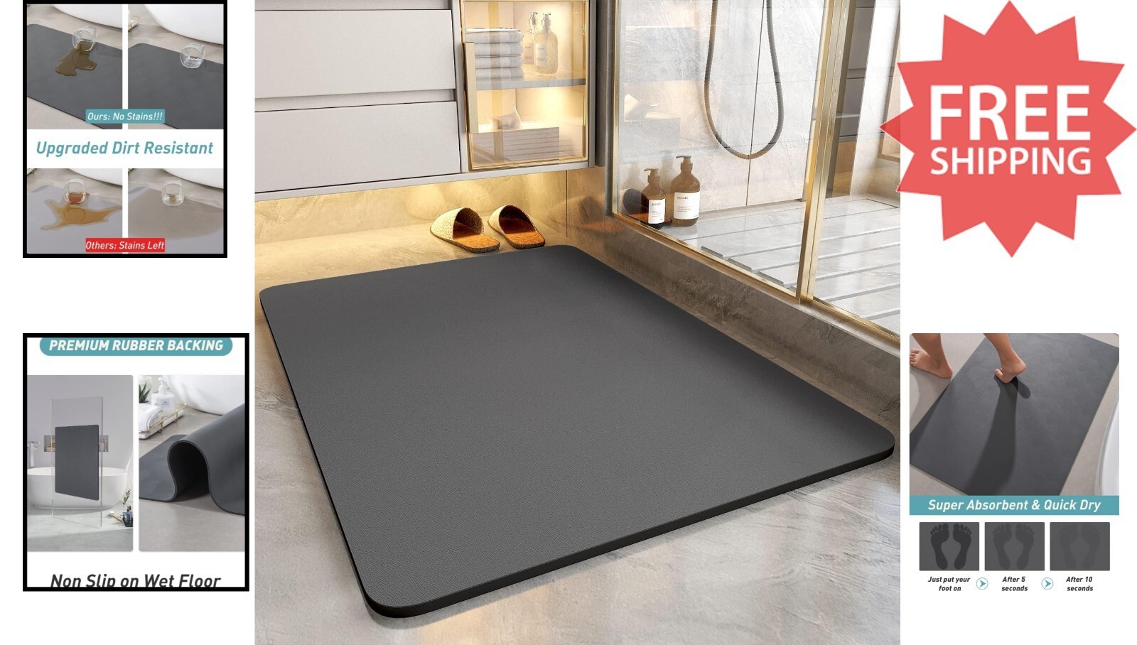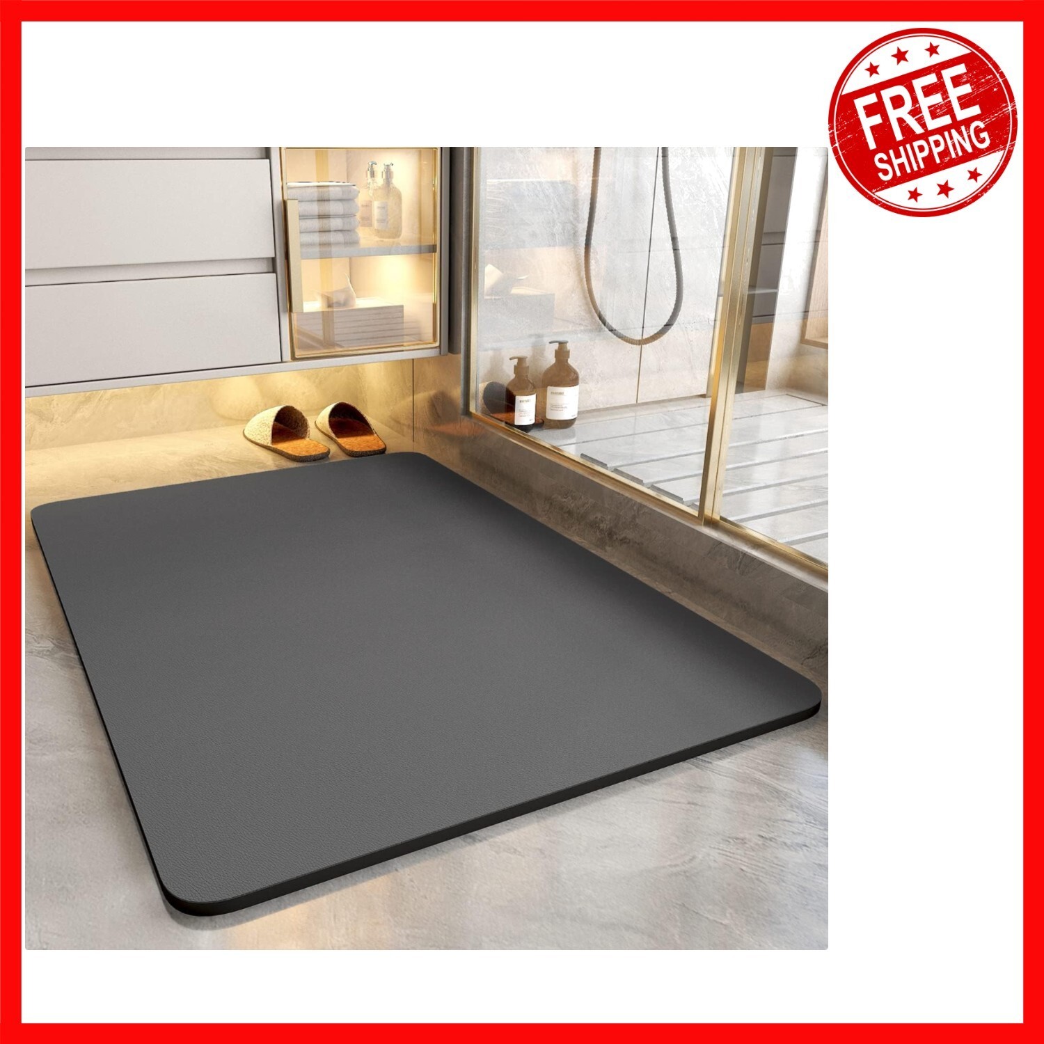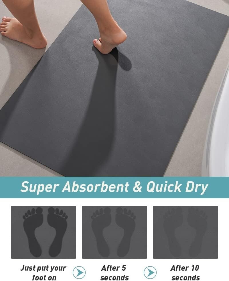 Experience the ultimate in bathroom convenience with our innovative, watermarked and dirt-resistant bath mat. Crafted with a waterproof PU leather surface, it absorbs water instantly without leaving stains, making cleaning effortless. Its ultra-porous, super-absorbent diatomaceous earth layer dries quickly, ensuring it feels like new in minutes. The 100% rubber backing offers a strong grip on wet floors, preventing slips and leaks. Durable and easy to maintain, this versatile mat can be cut to fit various spaces?from bathrooms to kitchens and entryways?and is friendly for wheelchairs. Elevate your home with our stylish, functional, and easy-to-clean bath mat. To ensure fast and reliable delivery, we work with multiple fulfillment partners and suppliers. Depending on availability and location, your order may ship from different warehouses or arrive in packaging that varies from item to item. Tracking details are typically provided shortly after shipment, and customer satisfaction remains our top priority.
