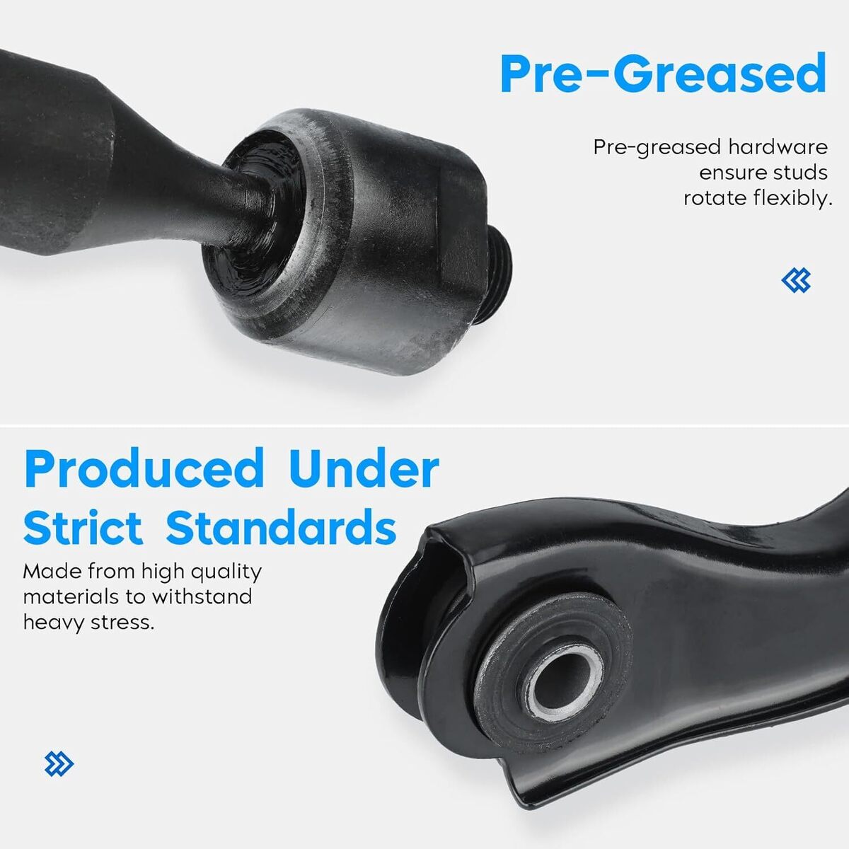 ? Pre-installed bushings help reduce road noise, vibration and harshness.