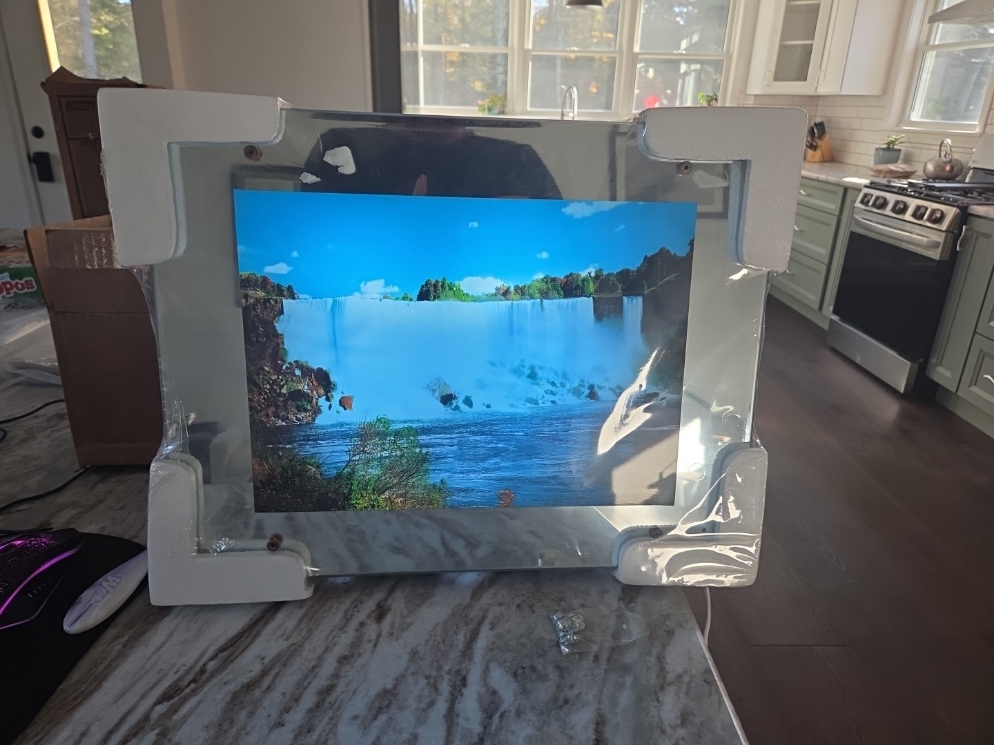 17"x14" Waterfall Picture Motion, Light Up Sound With Mirror Border Vintage NOS