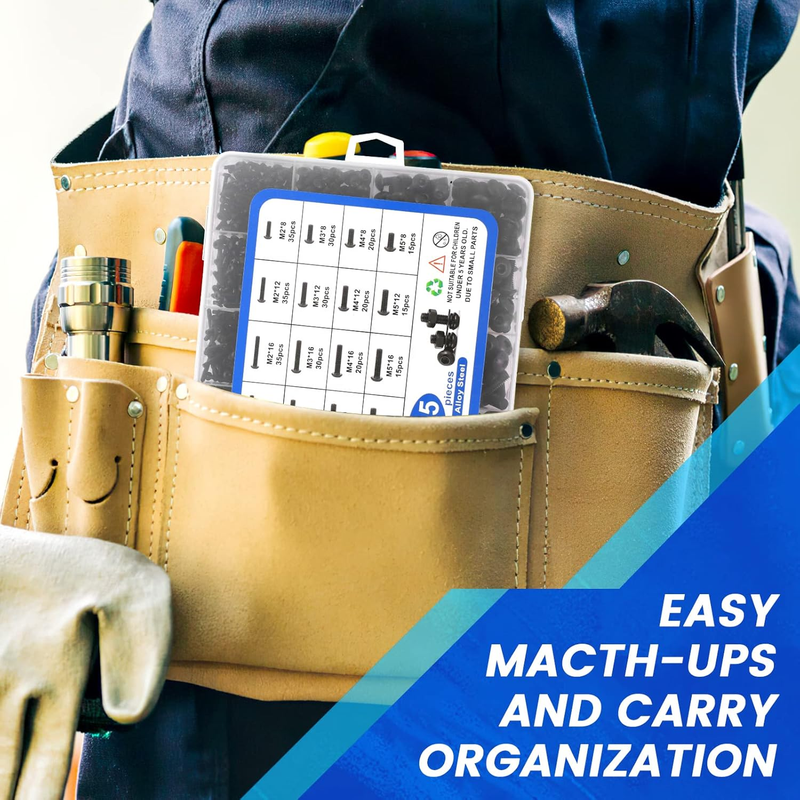 ?TIME MONEY SAVER?The screws are machined well and they have been organized into handy separate compartments. Included on the cover is a chart which directs you to the compartment and size of the hardware you're looking for. Compared to the time it takes to go to a hardware store and the cost of buying single screws, this screw set is a time and money saver.