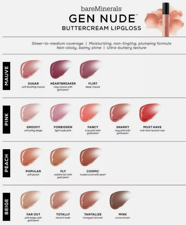 - BareMinerals Gen Nude Buttercream Lip-Gloss .13 Oz / 4mL, Popular FREE SHIPPING