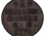 1771 Denmark 1 Skilling Coin In VF, KM# 616.1