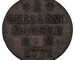 1771 Dinamarca 1 Moneda de Skilling en VF, KM# 616.1