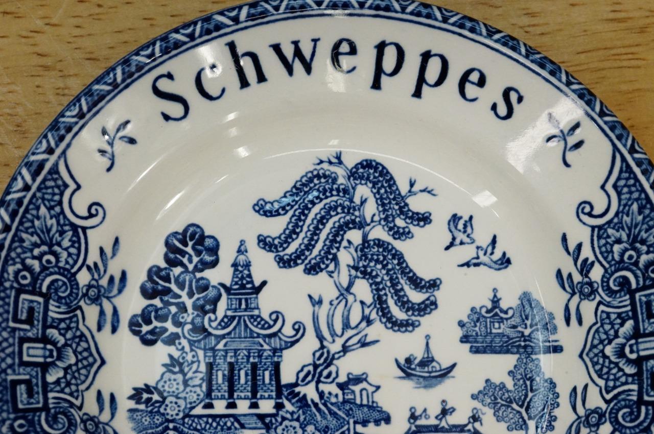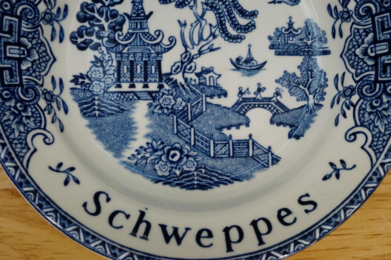 - Vintage English China Enoch Wedgwood Schweppes Tip Coaster Blue Willow Pattern
