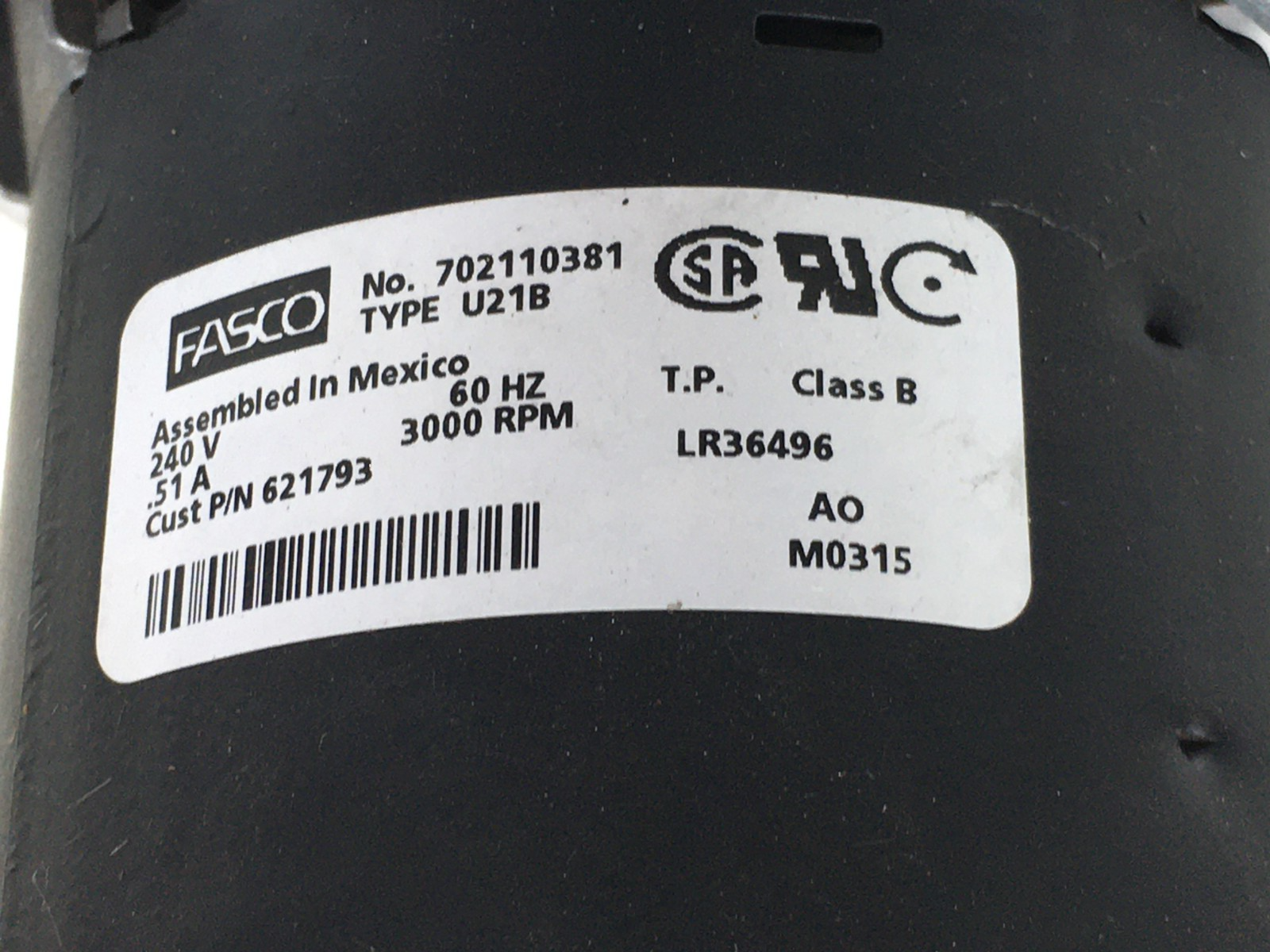 - FASCO 702110381 U21B Draft Inducer Blower Motor 621793 240V 3000 RPM used #MS286