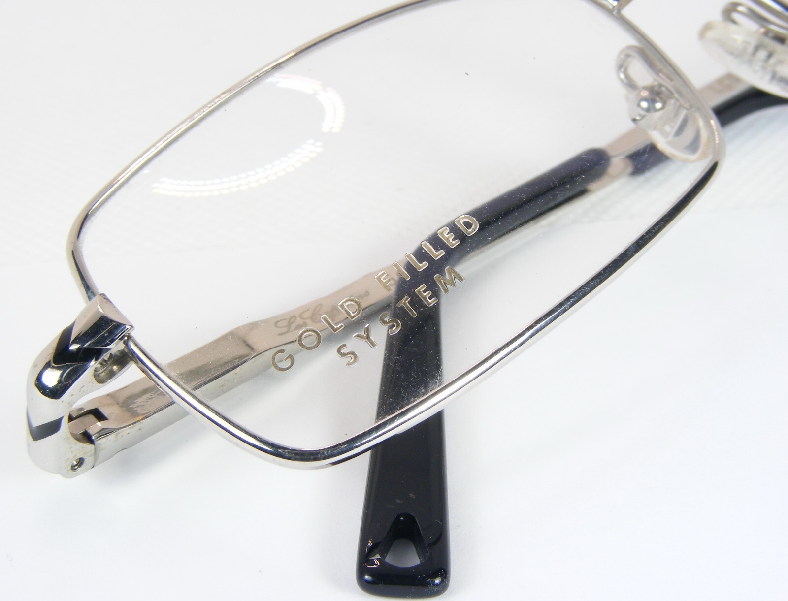 Die mit Gold gefüllten Brille naher und haltbar für festes Gold. Goldgefüllte Rahmen werden hergestellt, indem eine Schicht von 10 Karat oder mehr Gold durch eine Kombination aus Warme und Druck auf die Oberflache des stützenden Grundmetalls verschmelzen und dann zu einer bestimmten Dicke gerollt wird.