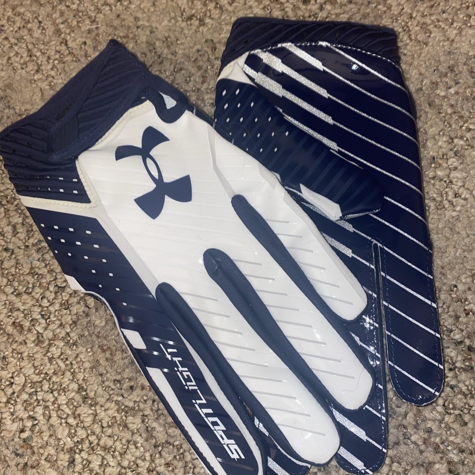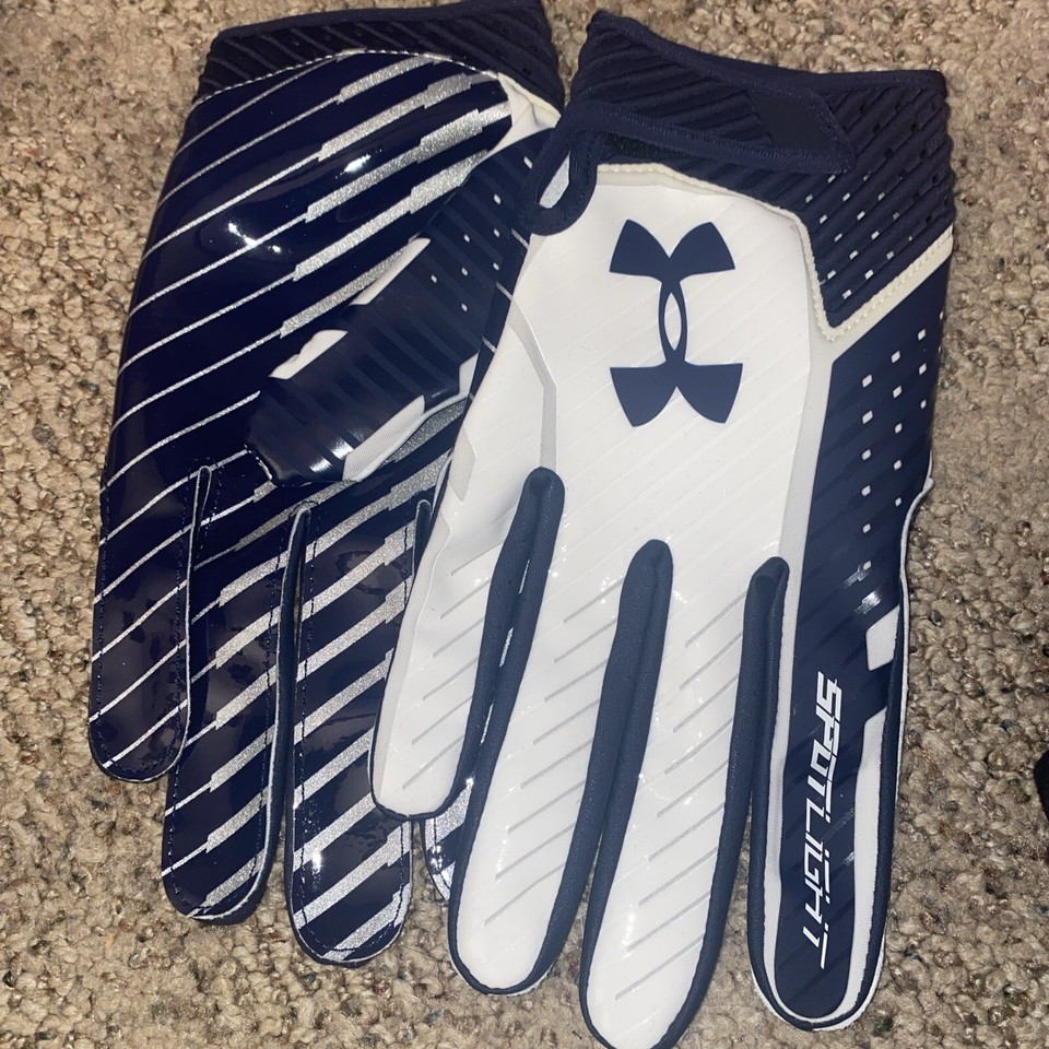 - UNDER ARMOUR SPOTLIGHT RECEIVER FOOTBALL GLOVES SKILL NAVY AND WHITE XXL