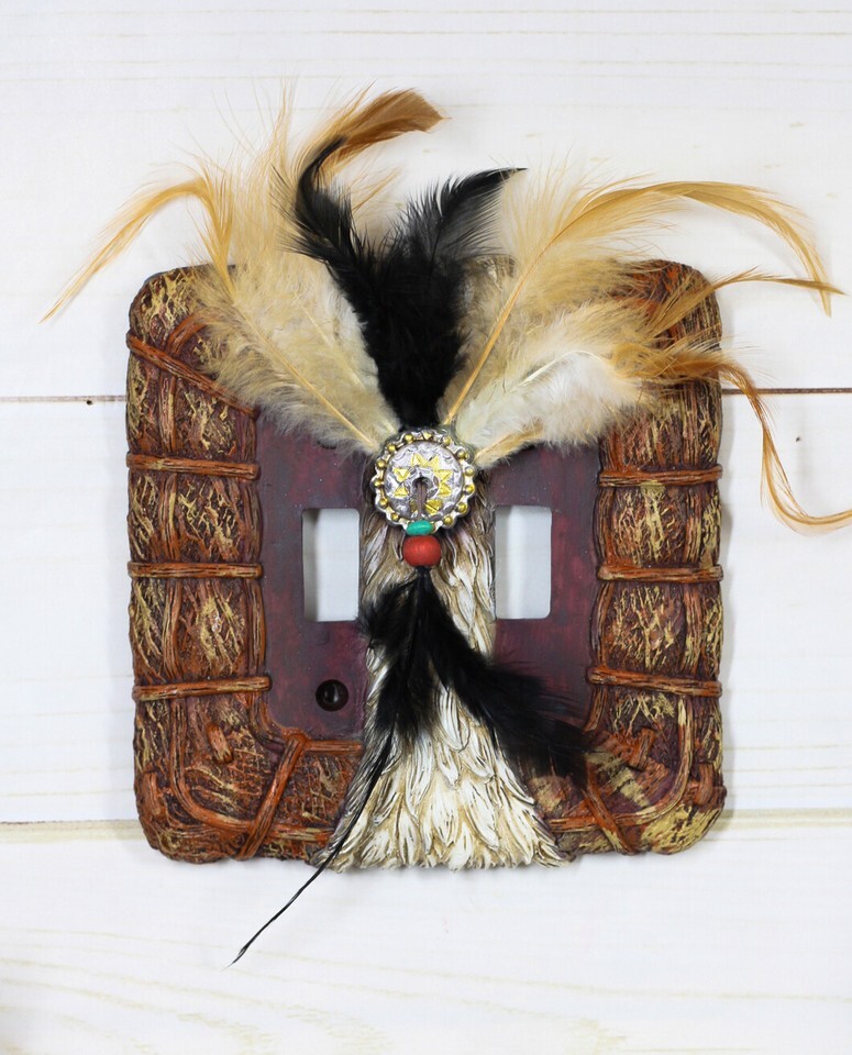 - Set of 2 Western Indian Dreamcatcher Straws Feathers Double Toggle Switch Plates