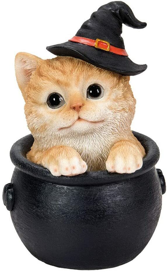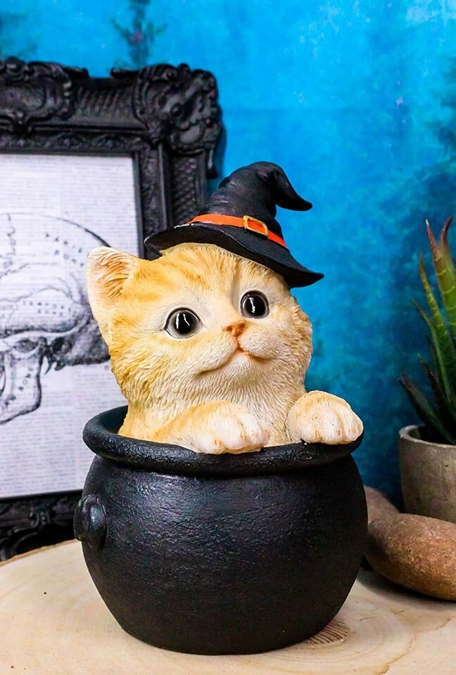 - Ebros Halloween Witches's Orange Tabby in Cauldron Collectible 6"H Figurine