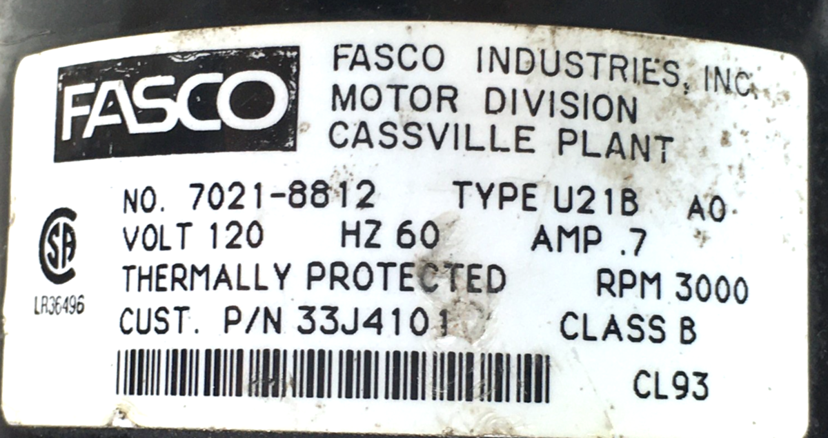 This is FASCO 7021-8812 Draft Inducer Blower Motor Lennox 33J4101 120V 3000 RPM used part.