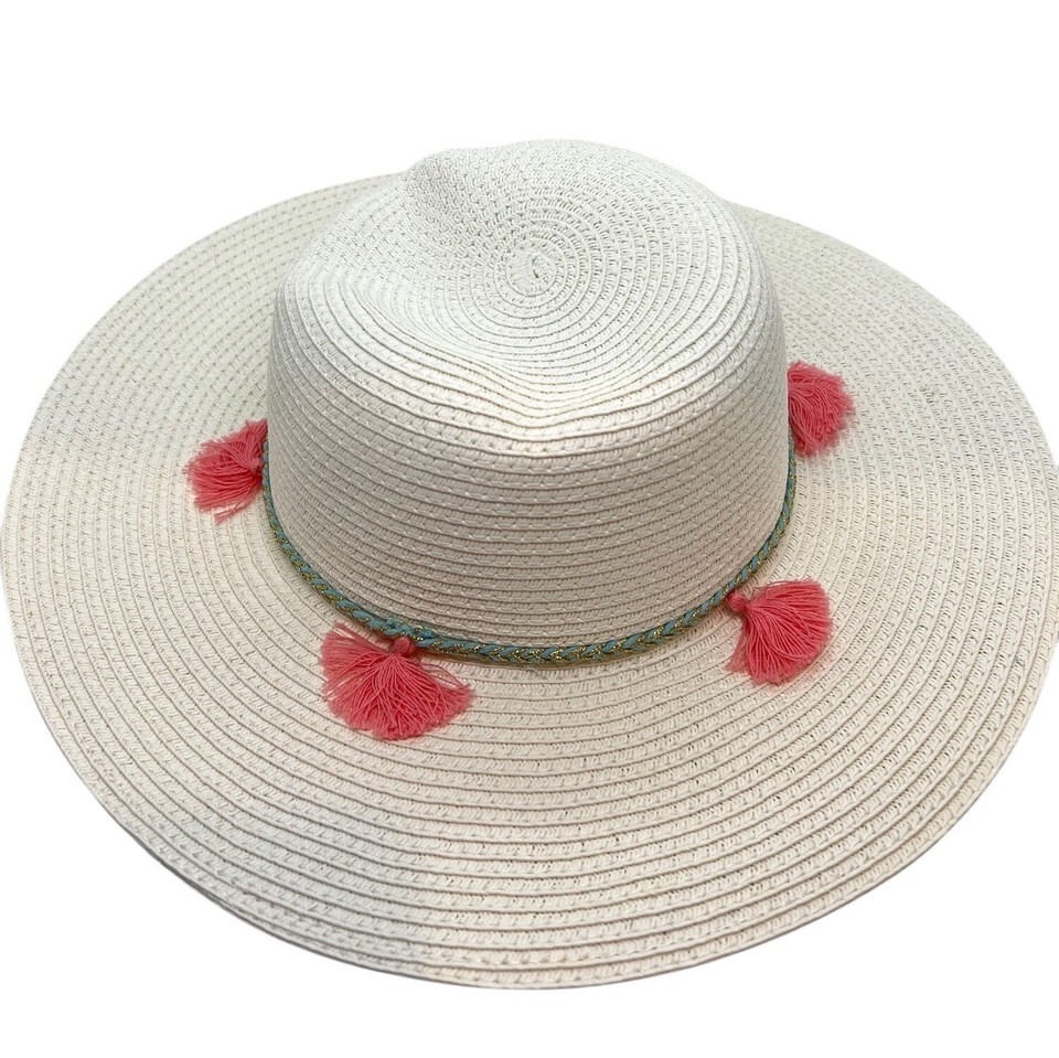- Janie and Jack Midsummer Getaway Girls White Sun Hat W/ Pink Tassels & Braided B