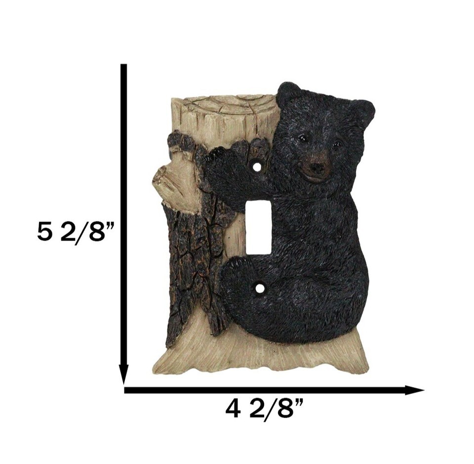 - Set of 2 Rustic Black Bear Cub Climbing On Tree Wall Single Toggle Switch Plates