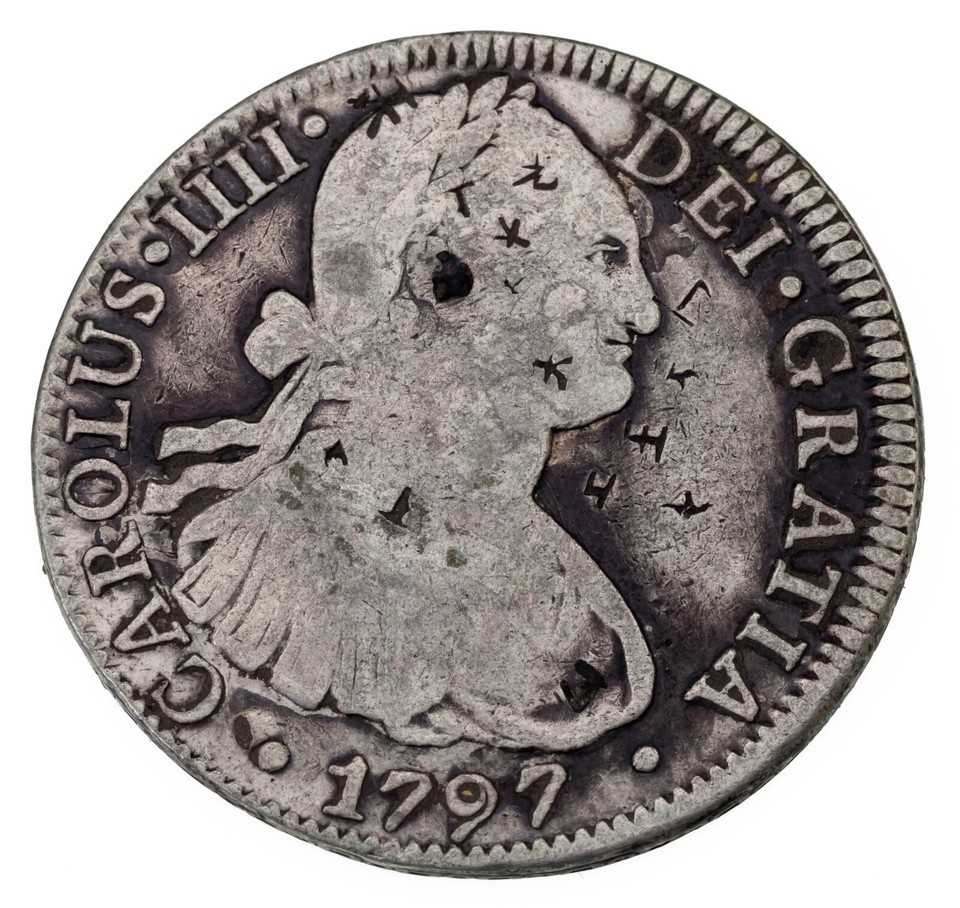 1797 MEXICO 8 REALES AVEC CHOPMARKS VF NET CONDITION