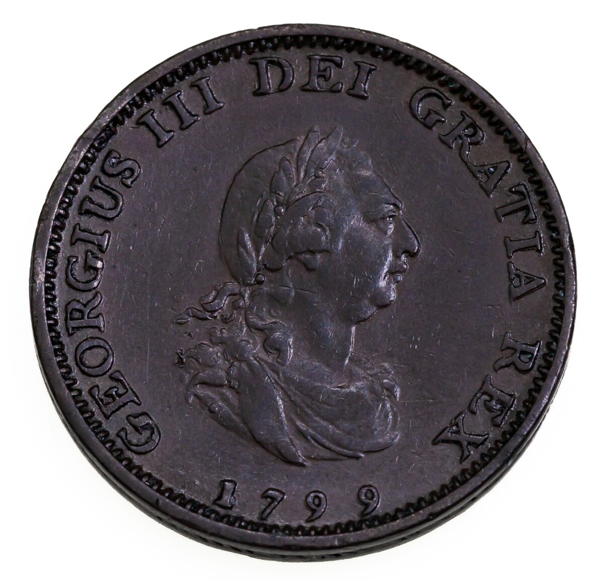 - 1799 Great Britain Farthing Coin in Extra Fine Conditon KM # 646