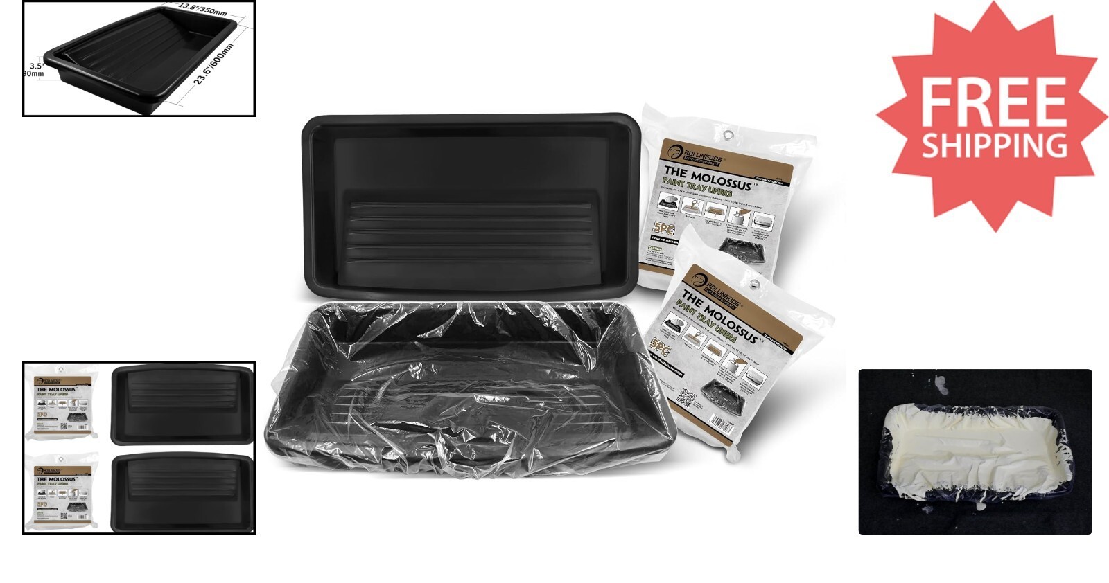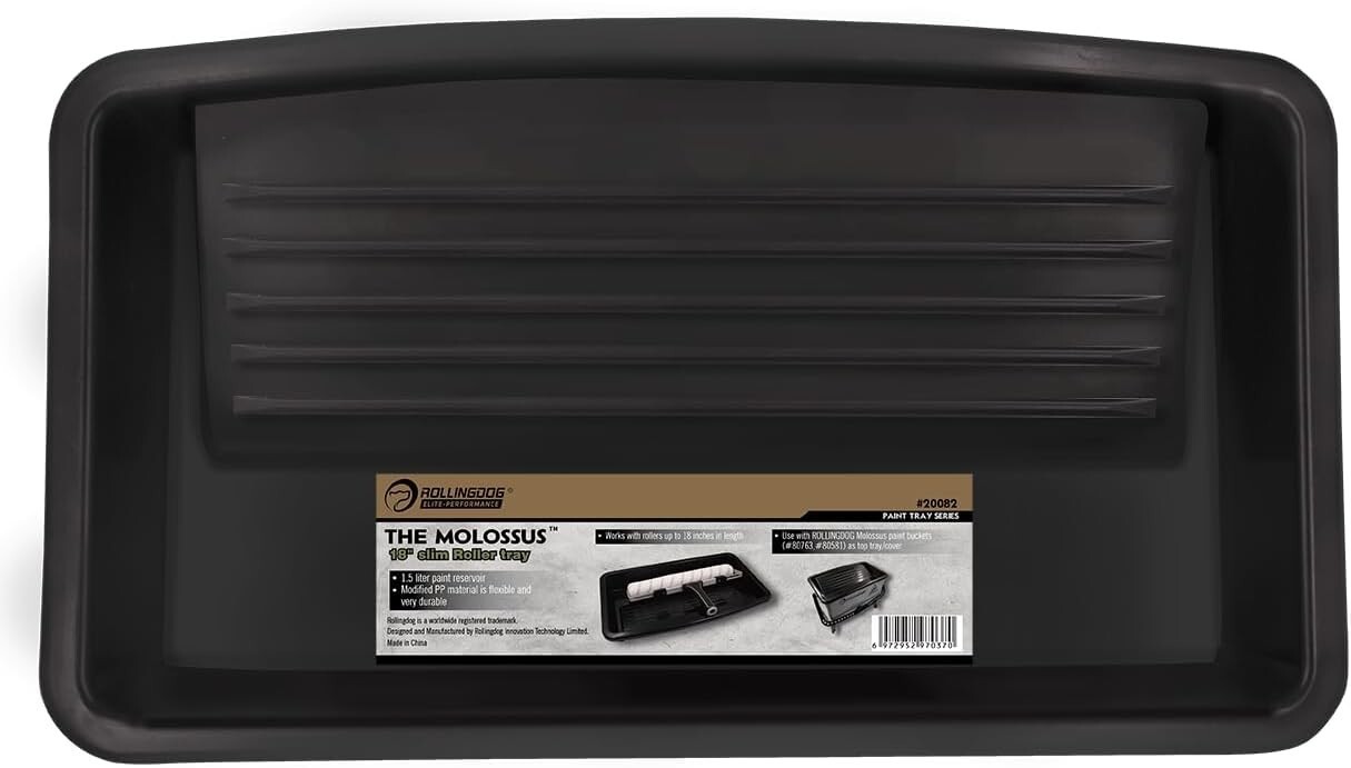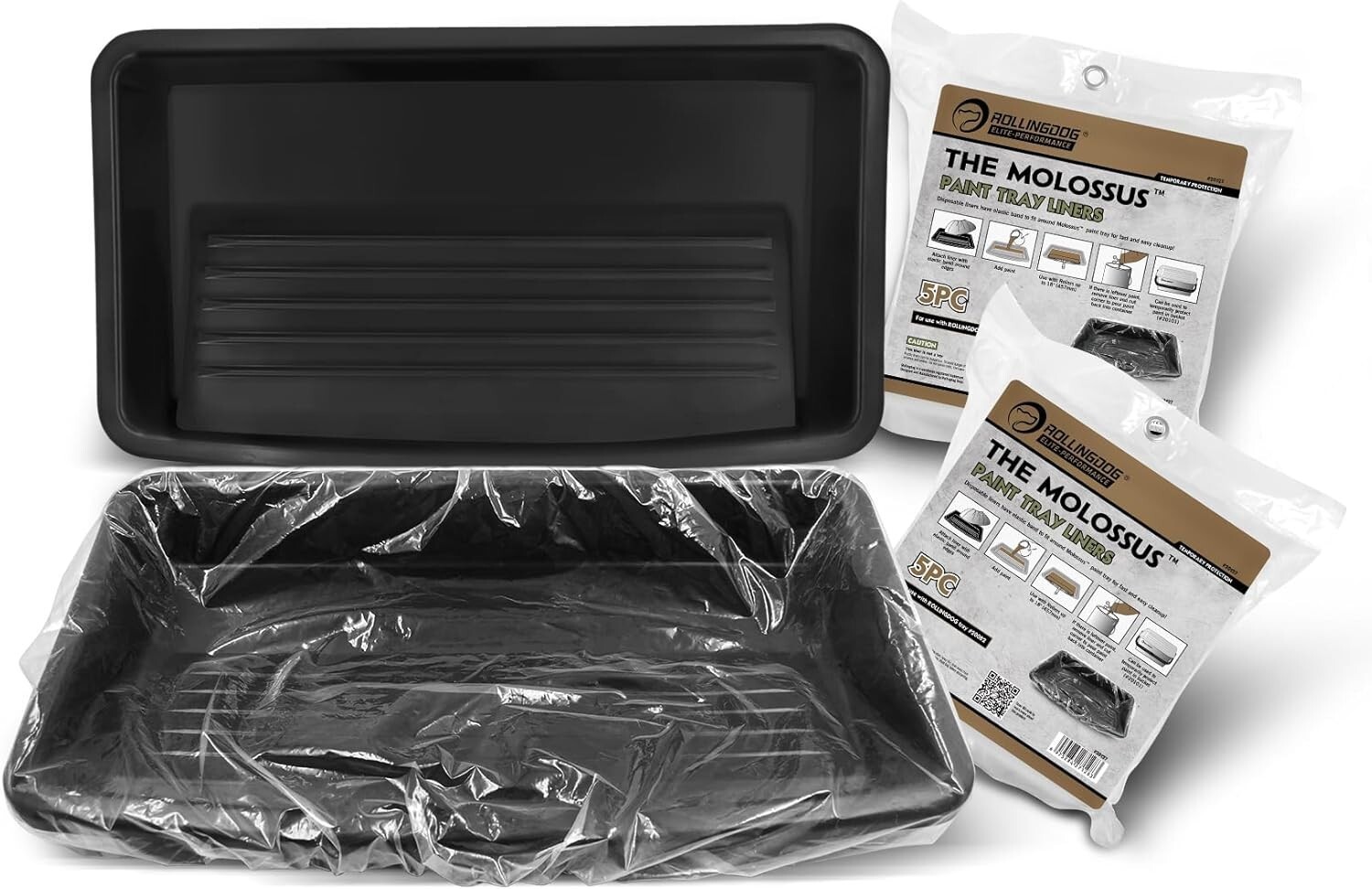 Transform your painting projects with our 18 Inch Paint Roller Tray Set, featuring two durable plastic trays and ten disposable liners designed specifically for THE MOLOSSUS paint roller system. Each heavy-duty tray boasts a textured loading grid and a generous capacity of up to 2 gallons?ideal for large areas and efficient coverage. The included paint saver liners help minimize waste by allowing you to easily collect and return unused paint, while also doubling as temporary covers for your paint containers. Additionally, the trays can function as lids for your paint buckets, streamlining your workspace. Elevate your home painting experience with this comprehensive, versatile set.