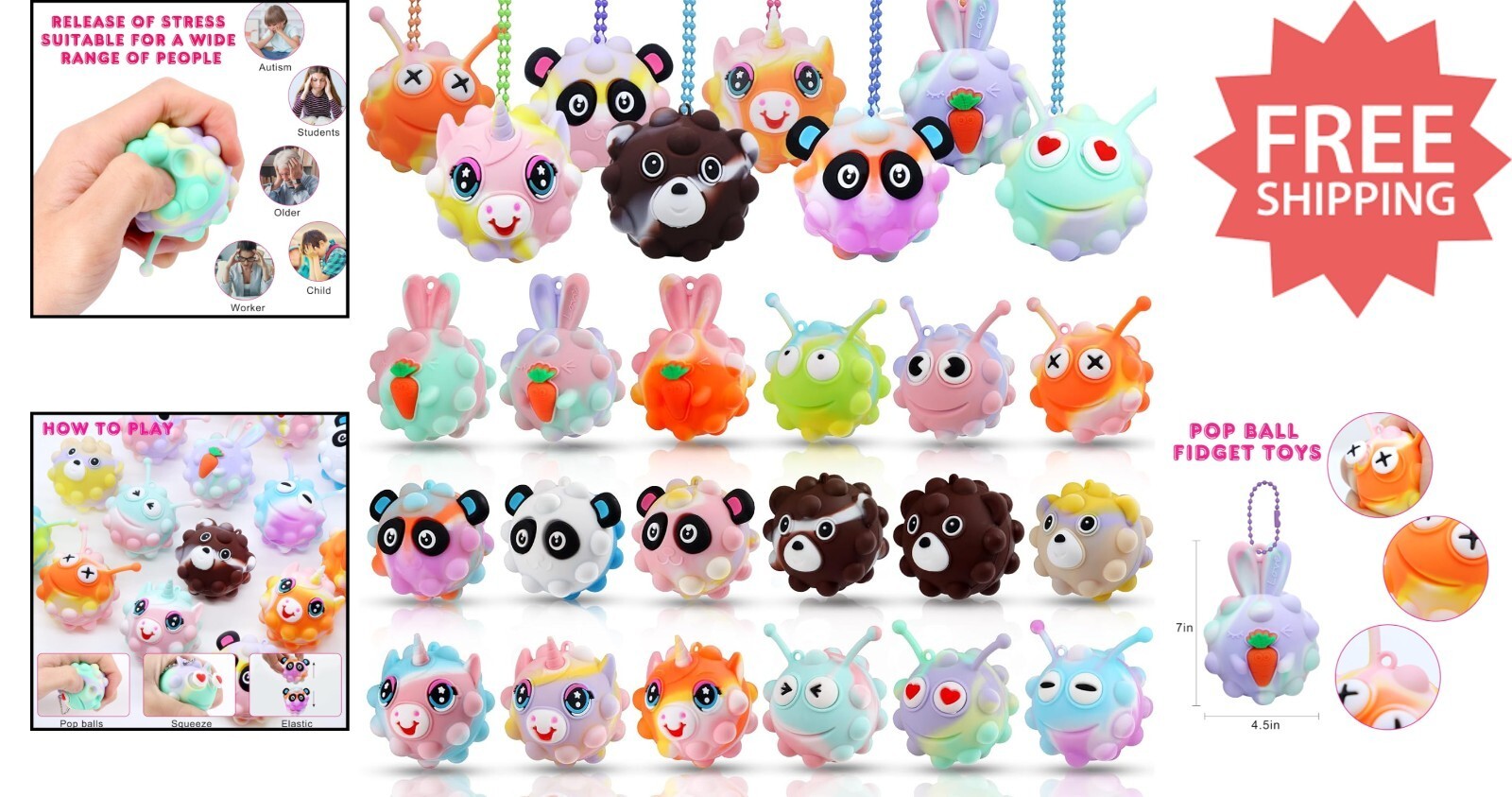 Discover the adorable and portable Animal Pop Fidget Balls, perfect for stress relief and fun on the go. These 3D animal-themed silicone pop balls feature satisfying popping sounds, providing a soothing sensory experience whether you're at work, school, or traveling. Designed with high-quality, child-safe materials, each compact 2-inch keychain is lightweight and easy to carry ? attach it to your bag, keys, or keep it in your pocket. Ideal as a thoughtful gift or party favor, these fidget toys help release tension, entertain, and delight users of all ages. Experience stress relief and fun anytime, anywhere! To ensure fast and reliable delivery, we work with multiple fulfillment partners and suppliers. Depending on availability and location, your order may ship from different warehouses or arrive in packaging that varies from item to item. Tracking details are typically provided shortly after shipment, and customer satisfaction remains our top priority. Please note that due to carrier policies and regional regulations, certain items may not be eligible for delivery to specific states or territories.