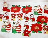- 18 Vintage Christmas Flocked Gift Tags & Gummed Seals Santa Snowgirl Poinsettia