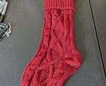This is an 18" red knitted Christmas stocking in a solid pattern, shaped like a sock. With a festive holiday theme, it features a stocking character and is made of cotton material. It is large in size, measuring 18" in height and 5" in length, perfect for hanging by the fireplace or on a mantel during the holiday season.