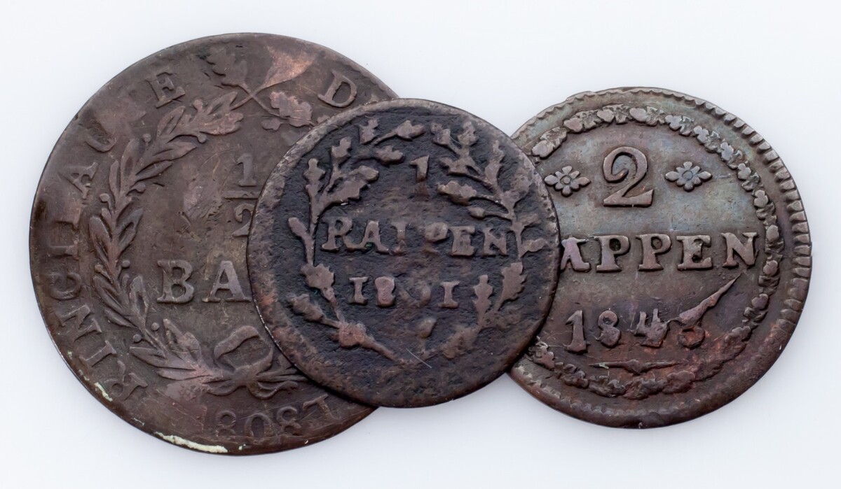 - 1801-1843 Swiss Cantons 1/2 Batzen, 1 & 2 Rappen Coin lot of 3 (VF)