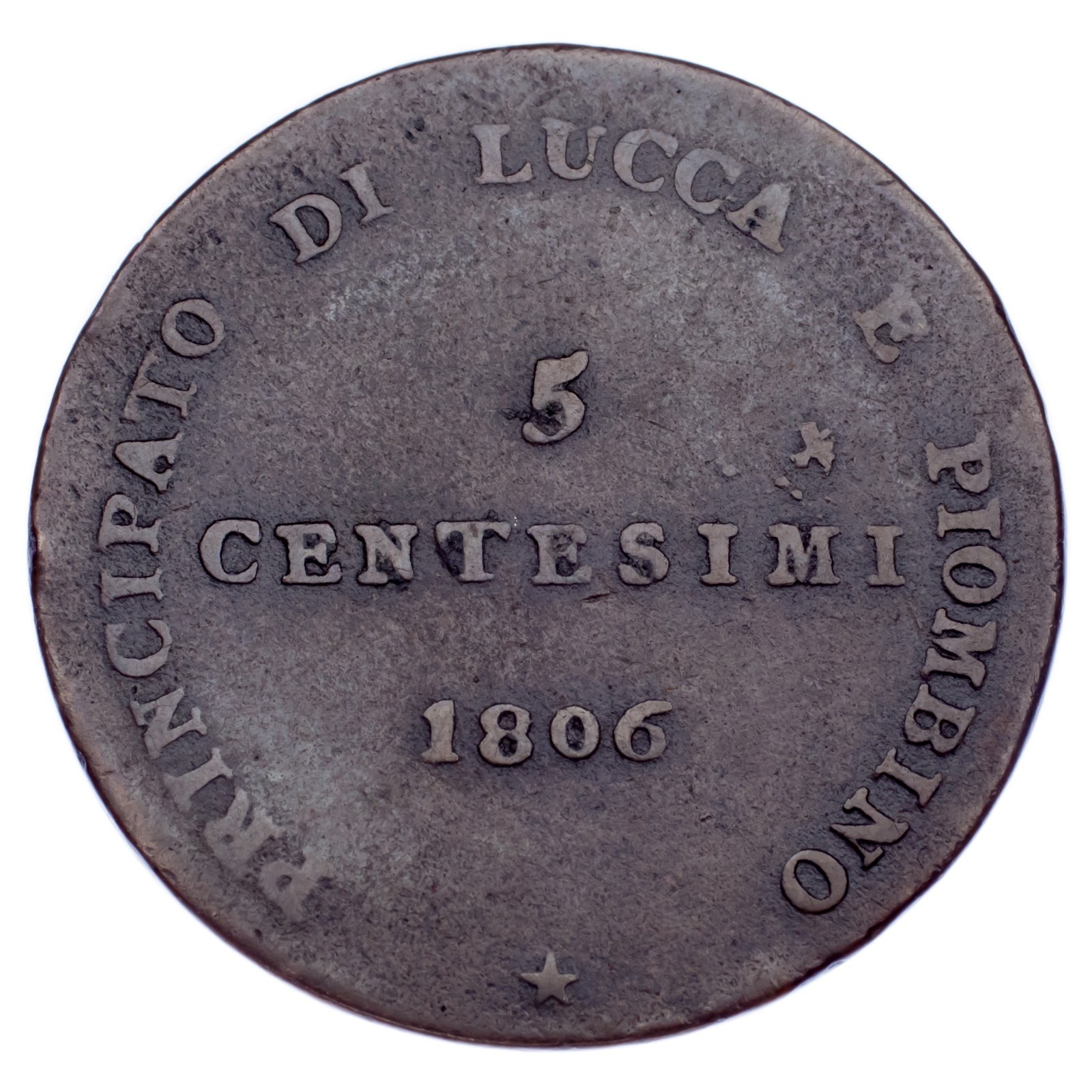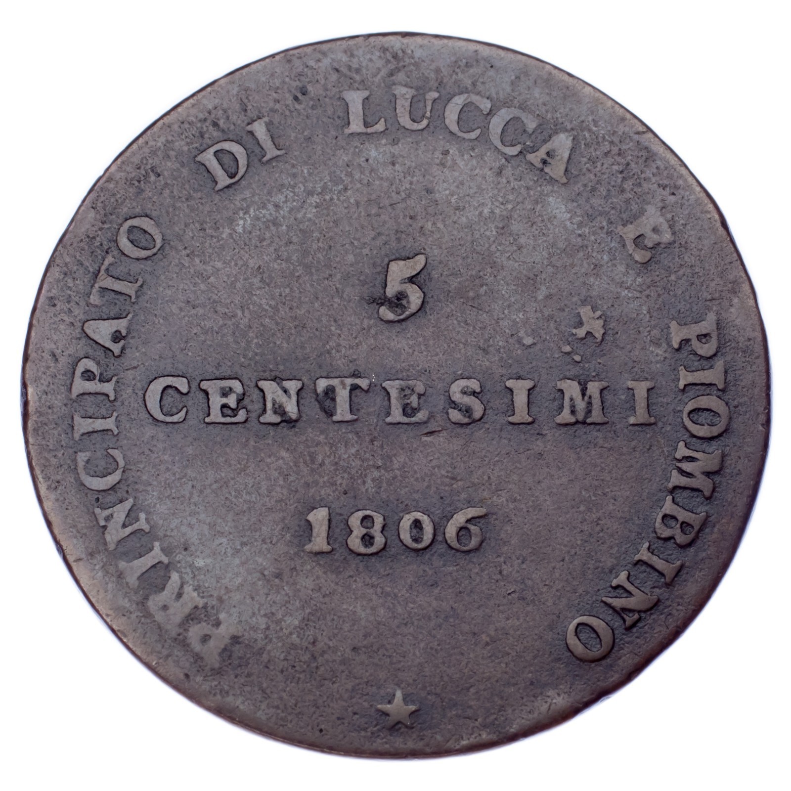 1806 Italian States Lucca 5 Centesimi KM #22 VF+ Condition