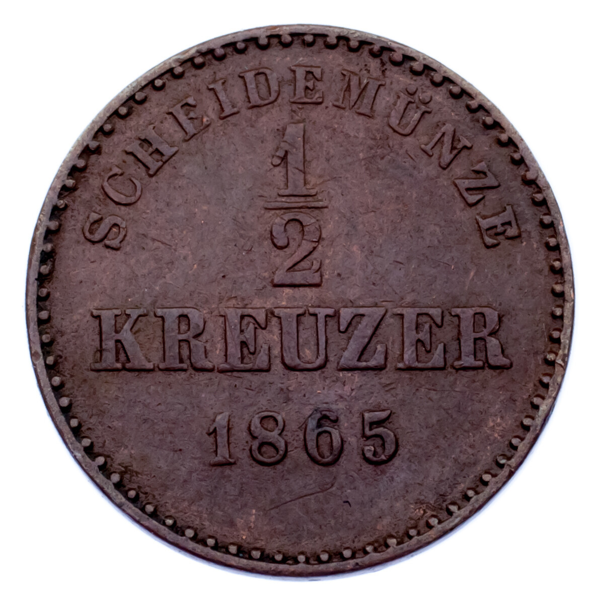 1865 German States Württemberg oe-Kreuzer, Very Fine+ (VF+), KM#611, copper (unknown)