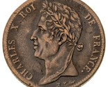 Obverse features a laureate bust of the king, facing left, with legend CHARLES X ROI DE FRANCE