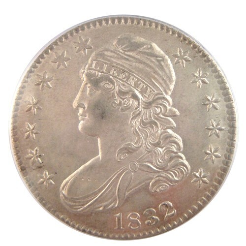 1832 50C Busto con tapa Medio dolar calificado por PCGS como letras minúsculas genuinas