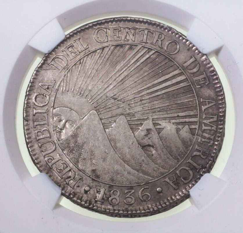 - 1836NG M Central American Republic 8 Reales NGC AU-58 High Grade- show origin...